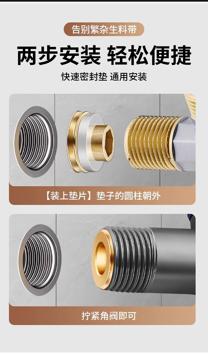 A beautiful brass core replaces the raw material-free sealing gasket four-point quick installation anti-leakage faucet angle valve sealing ring accessories 3 pack free raw material belt gasket