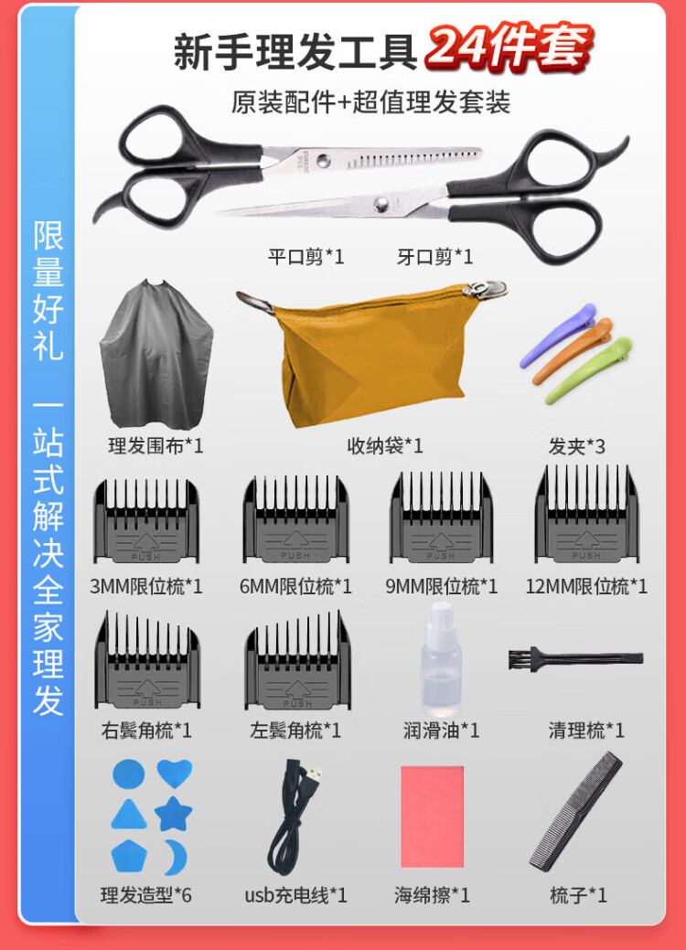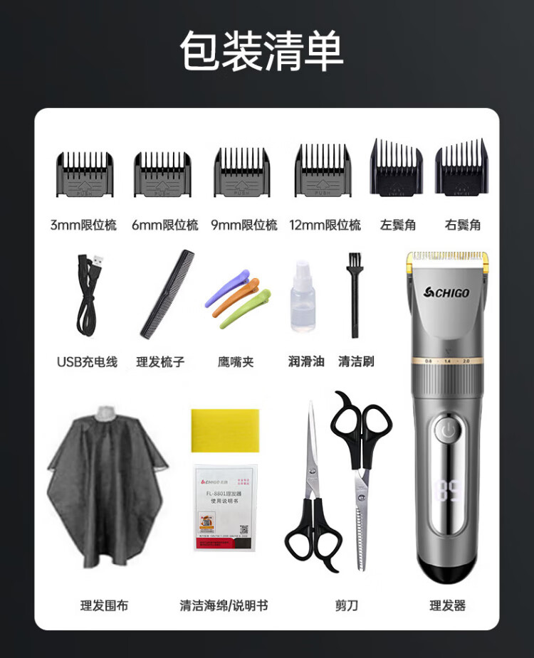 CHIGO Electric Hair Clipper Hair Clipper Electric Clipper Professional Household Adult Children Baby Shaving Hair Clipper Hair Clipper Self-Hairing Artifact Tool Complete Set 938Q