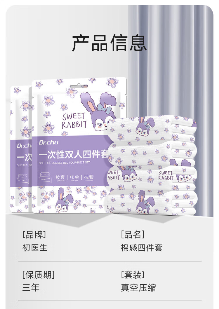 Doctor Chu's disposable four-piece set of cotton-feeling double sheets, quilt covers, pillowcases, thickened dirt-proof travel hotel bedding