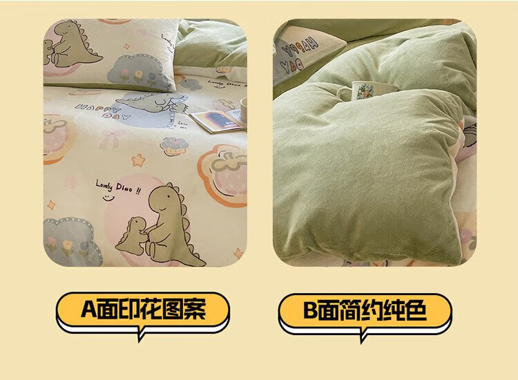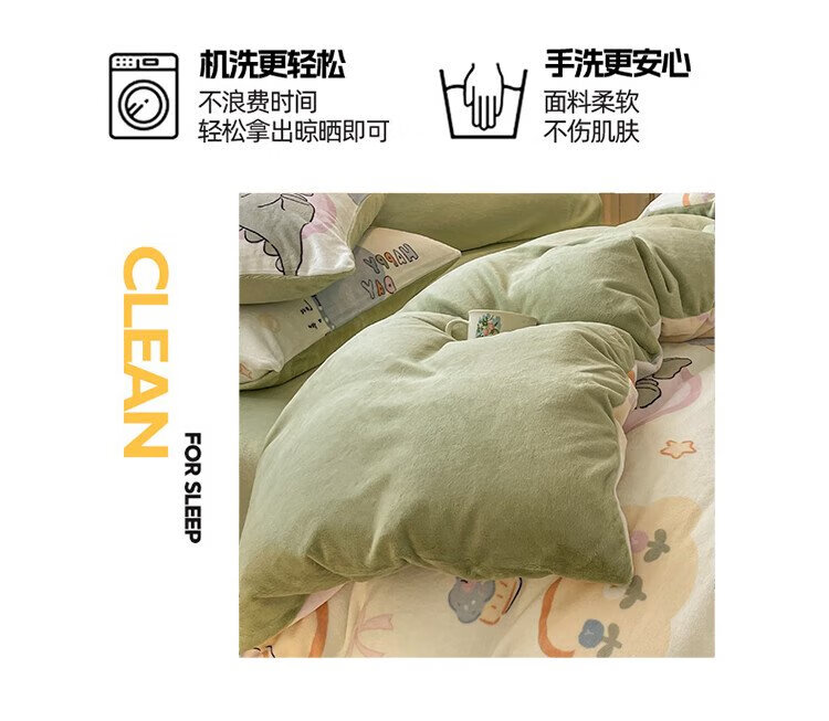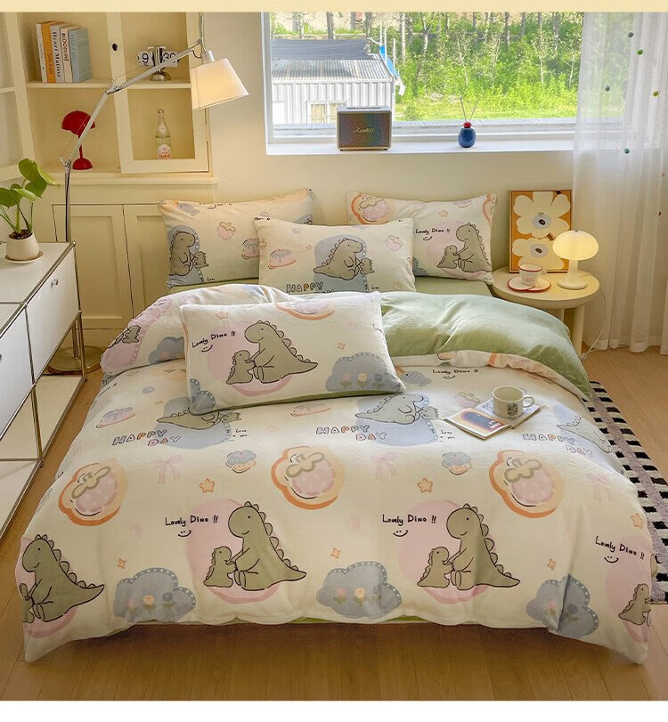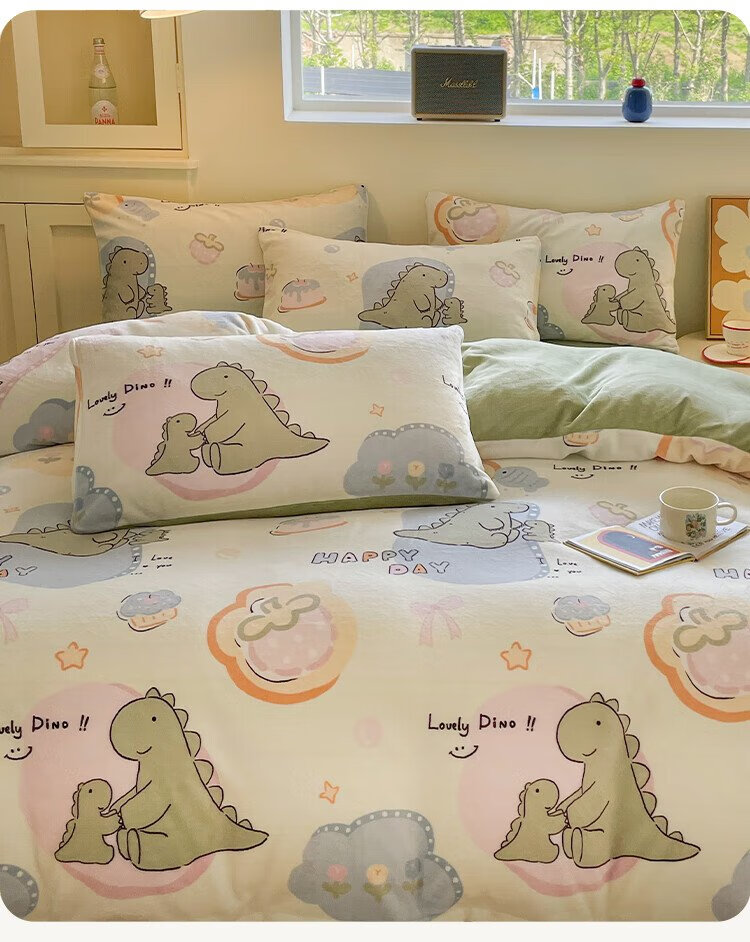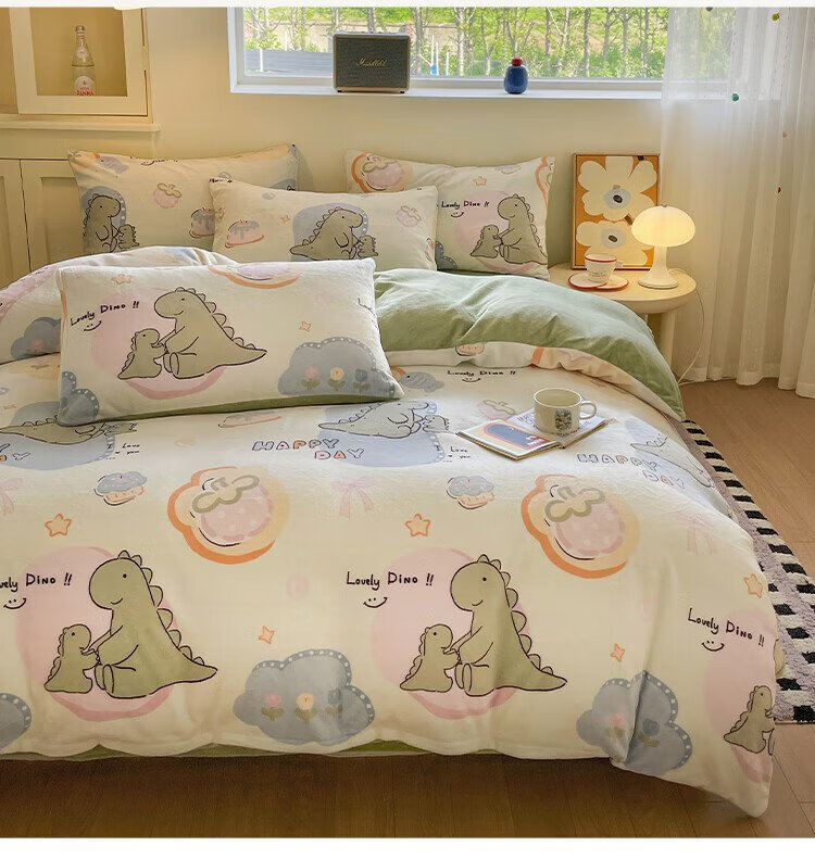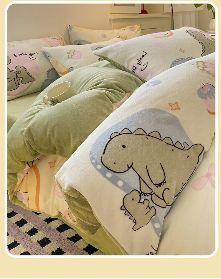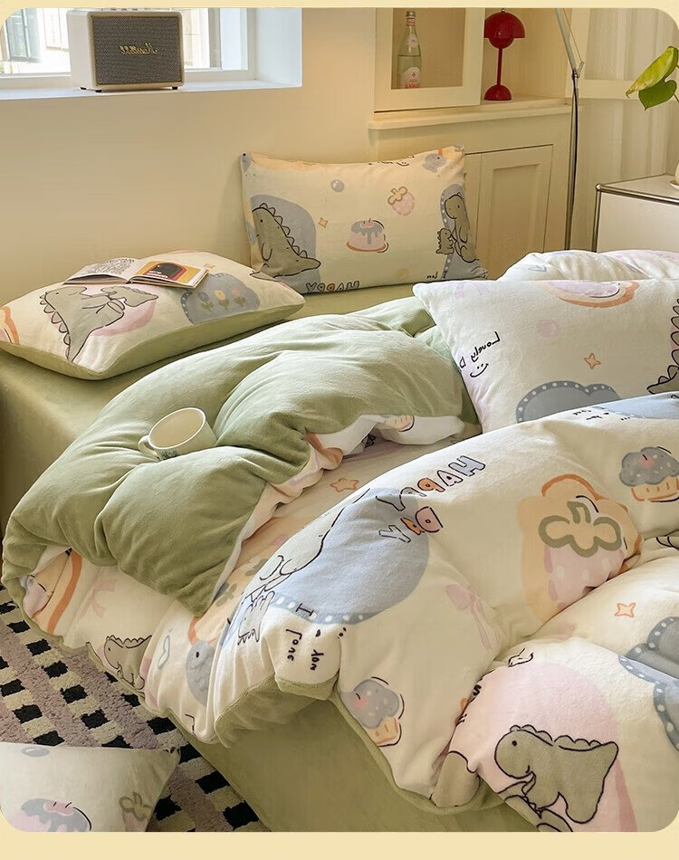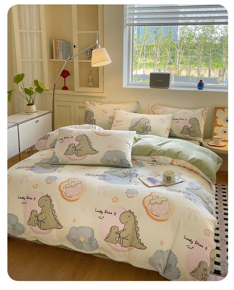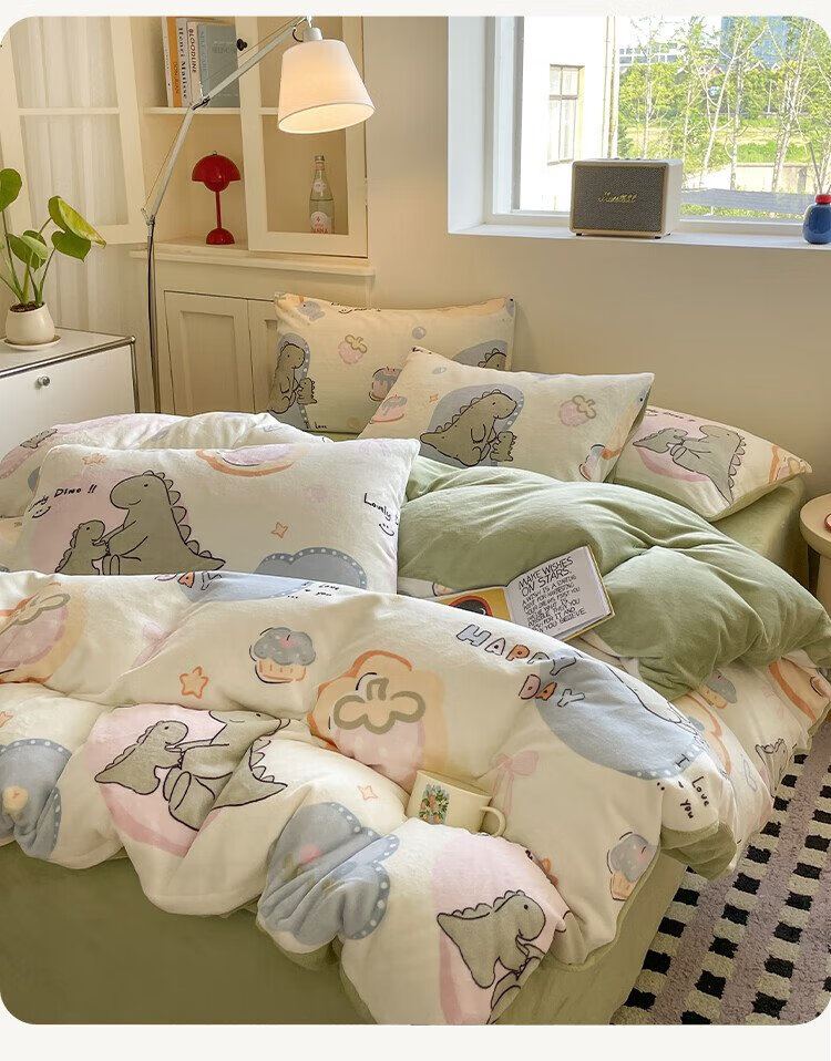 MINISO Milk Velvet Bed Four-piece Winter Thickened Quilt Cover 1.5/1.8 Meter Sheet Style Quilt Cover 200x230cm