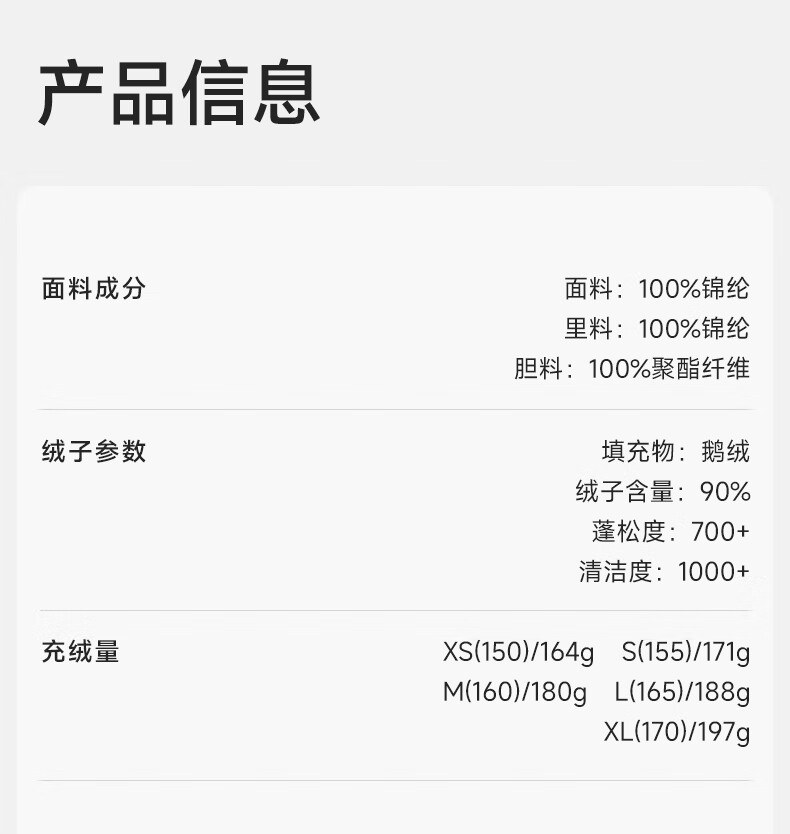 China (cm) 165 / 88-90 170 / 96-98 175 / 108-110 180 / 118-122 185 / 126-130
