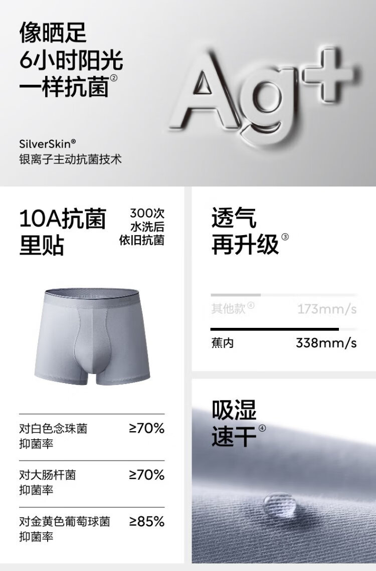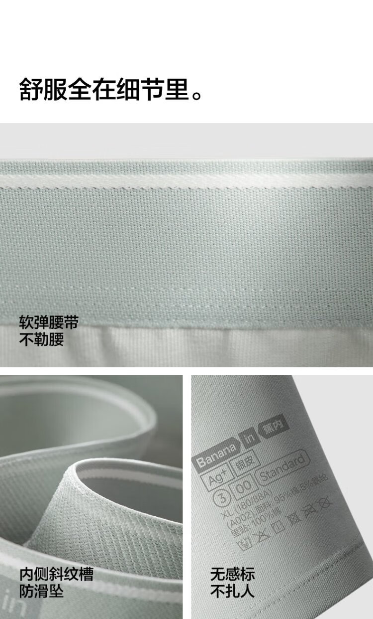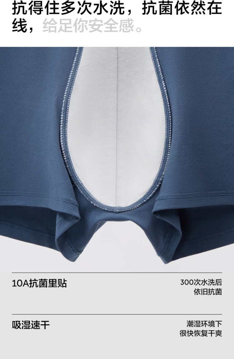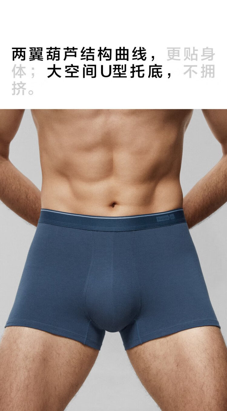 Jiao Nei Yinpi 300S Men's Boxer Briefs Sports Breathable 10A Antibacterial Cotton Sweat-Absorbent Shorts Tops and Bottoms Gift Box 3 Pieces