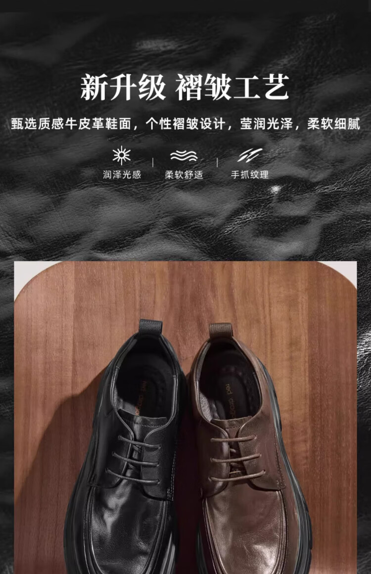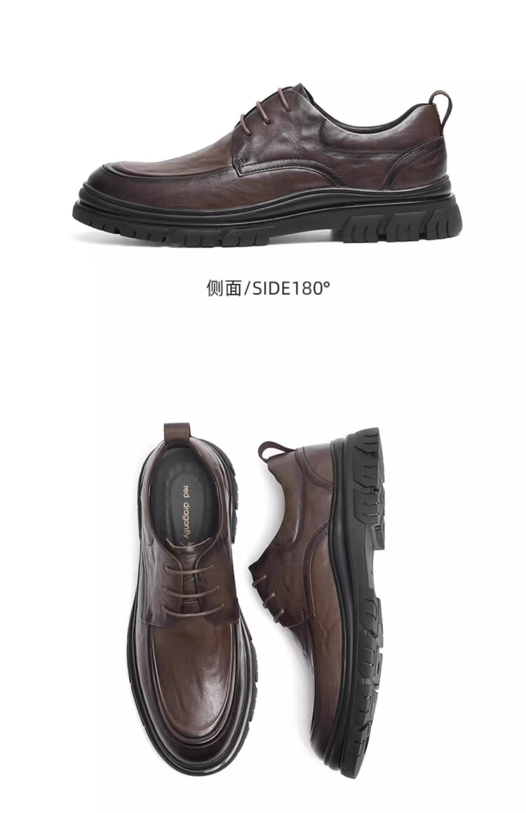Red Dragonfly Men's Leather Shoes Spring and Autumn Men's Lace-up Genuine Leather Formal Leather Shoes Business Work Shoes WTA34061 Brown 42