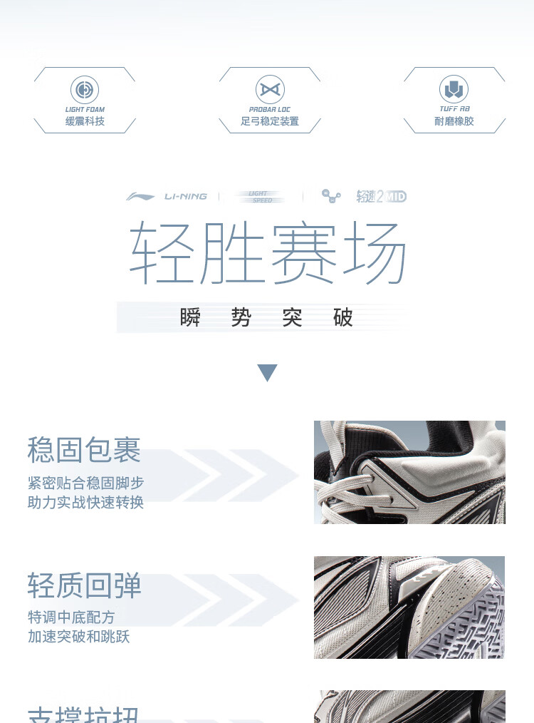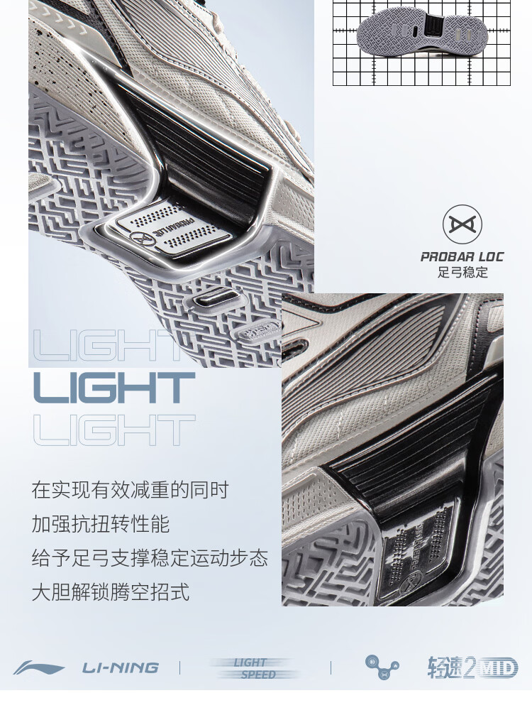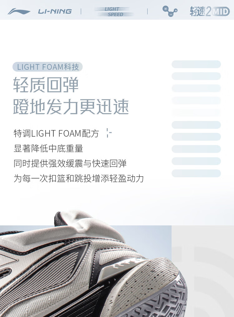 Li Ning Light Speed ​​2 MID丨Basketball Shoes Men's Summer Support Stable Mid-top Basketball Court Shoes ABPU057