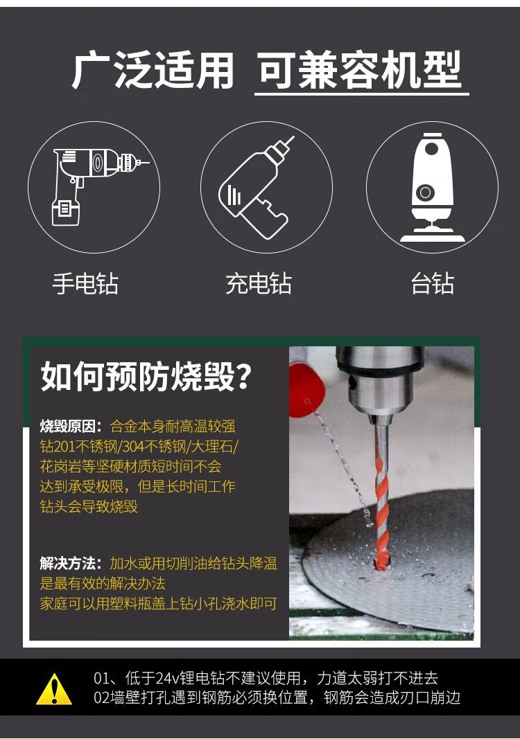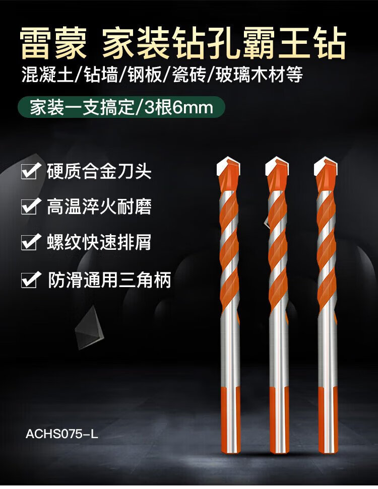 Raymond Overlord drill tile concrete cement marble metal impact twist drill bit alloy triangular handle 6mm 3 pieces