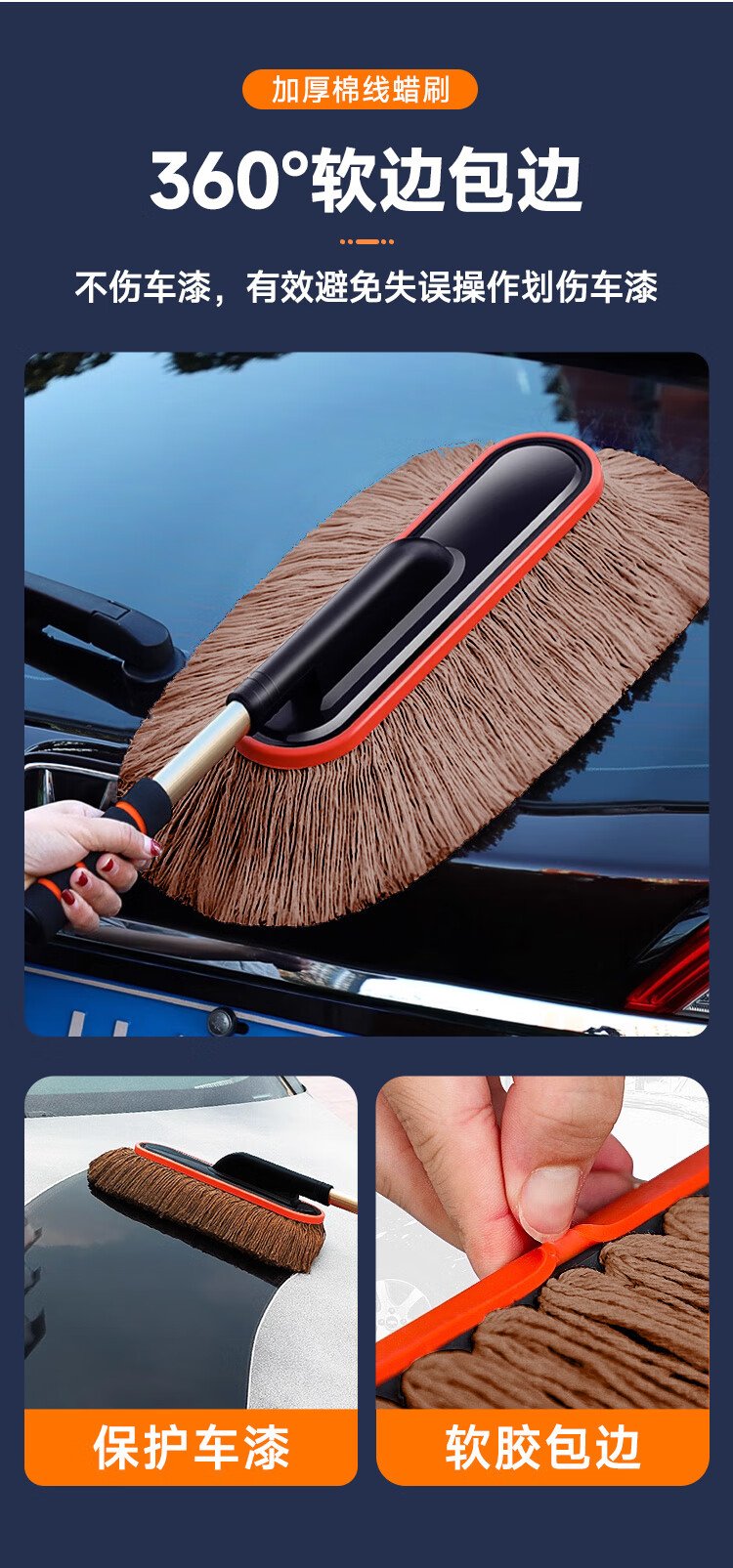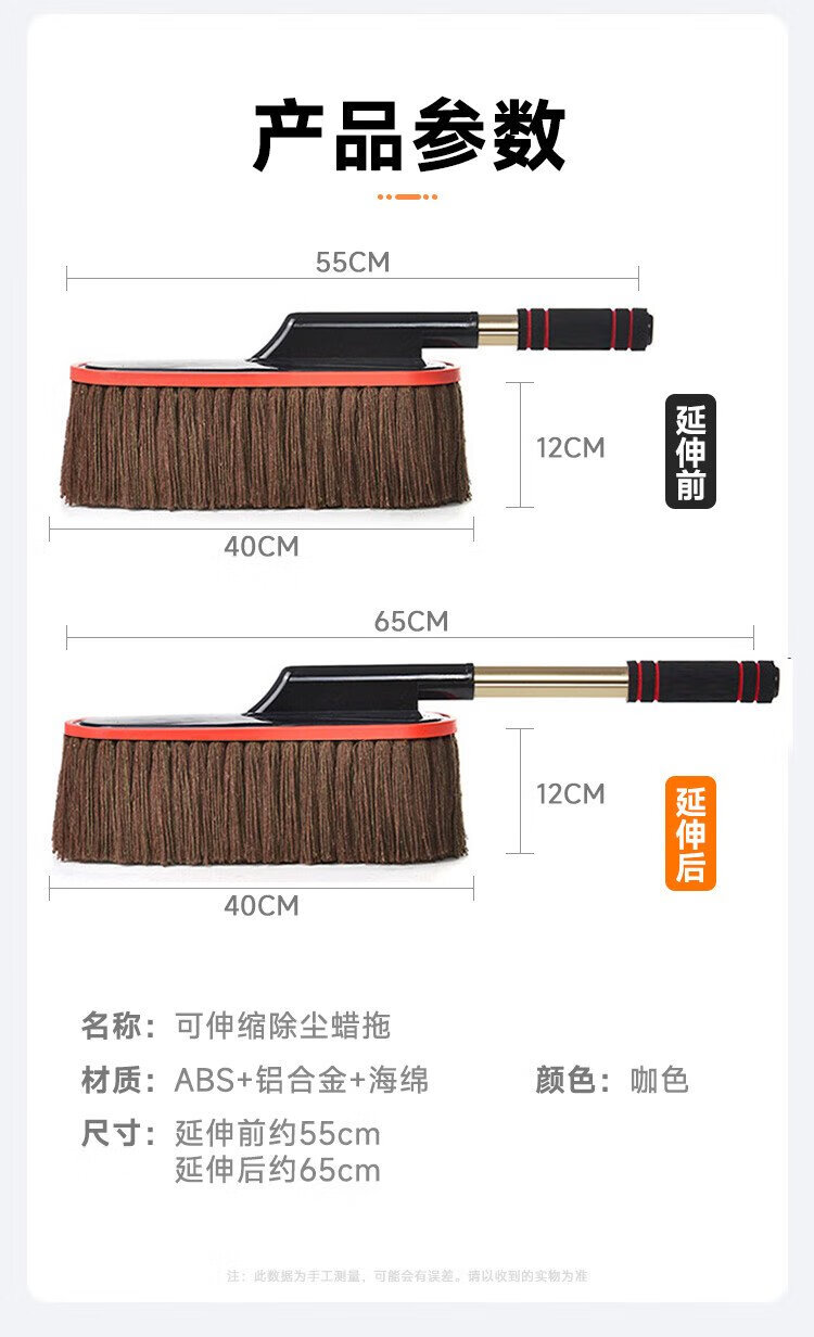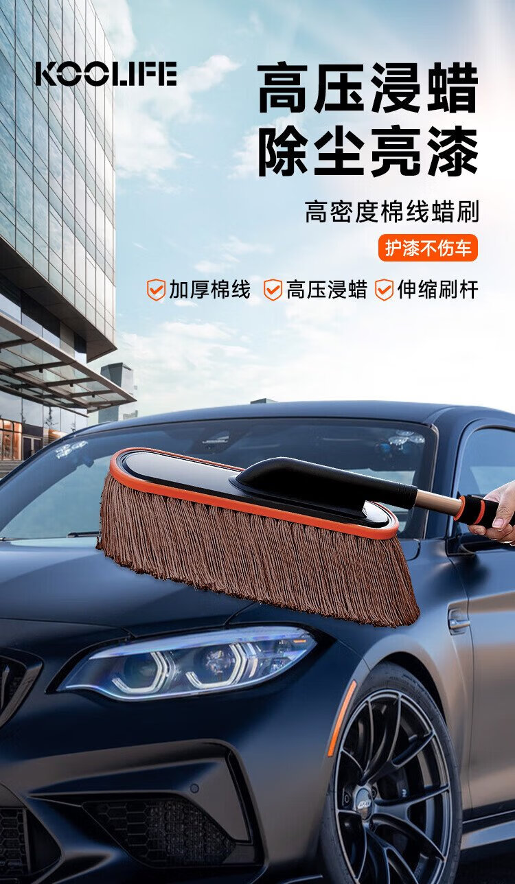 KOOLIFE car dust duster, car mop, snow dust artifact, oil wax brush, high-end car special pure cotton retractable