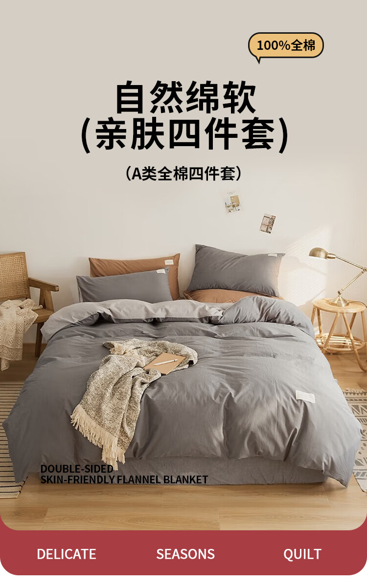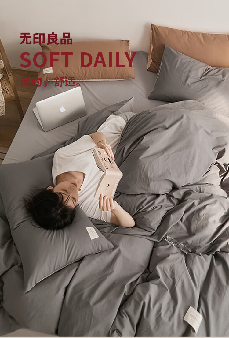 MUJI four-piece bed set pure cotton 100% cotton bed sheet quilt cover 200x230cm suitable for mother and child sleeping together Chenhui