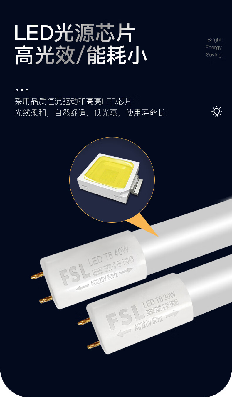 Foshan Lighting (FSL) LED tube energy-saving lamp T8 double-ended length 1.2 meters 40W white light 5 pieces