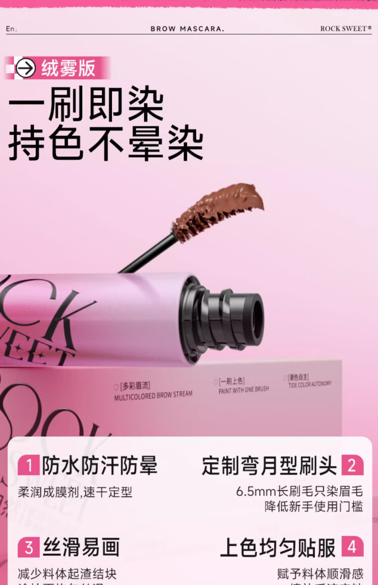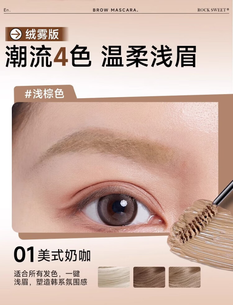 ROCK SWEET Velvet Mist Eyebrow Cream Waterproof, long-lasting, non-fading, natural, quick-drying, waterproof, sweat-proof, not easy to smudge 01 American milk coffee*1