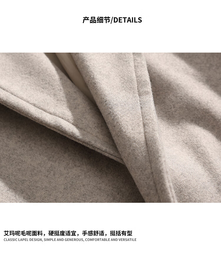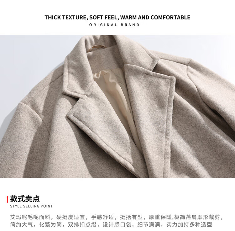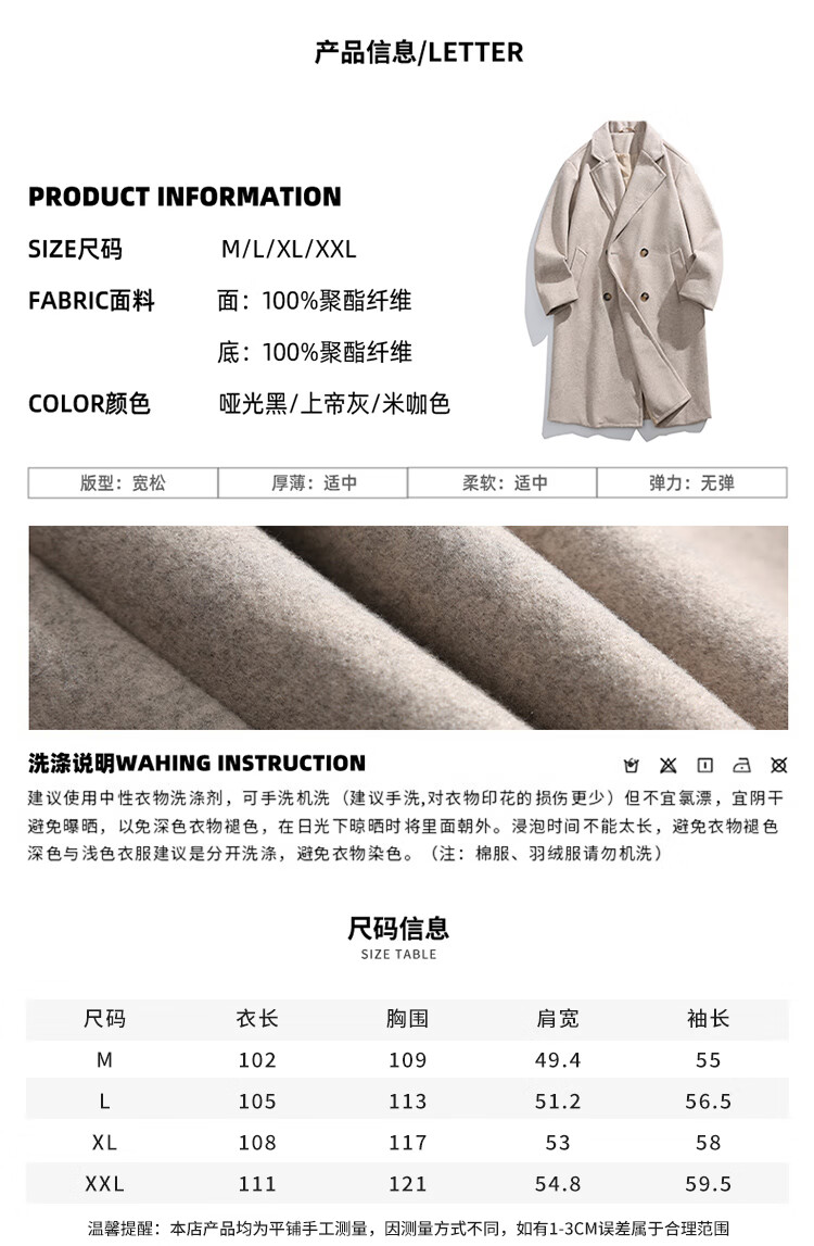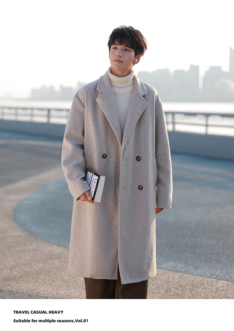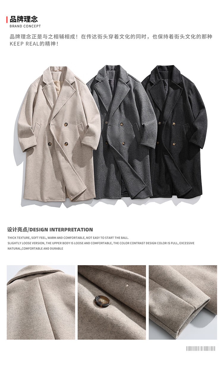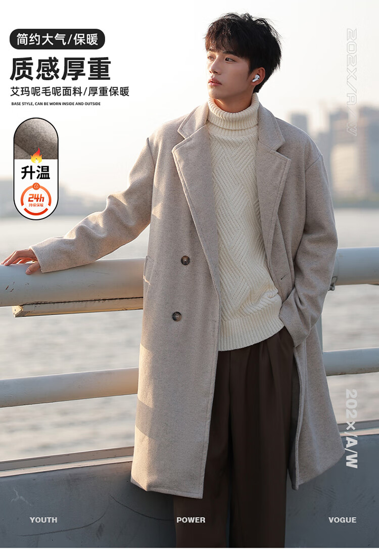 Dingfengbaoluo Korean style woolen coat for men winter mid-length thickened coat high-end double-breasted HK09 matte black L