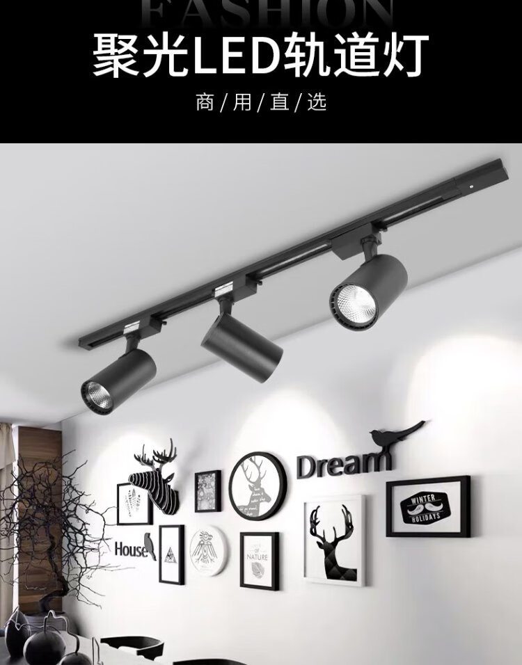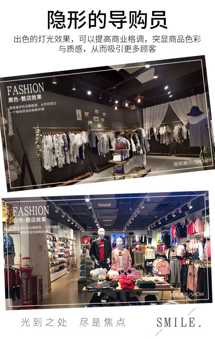 CANMEIJIA LED spotlight track light surface-mounted super bright commercial clothing store exhibition hall background wall track light ceiling ceiling light 30W-black (warm yellow light)