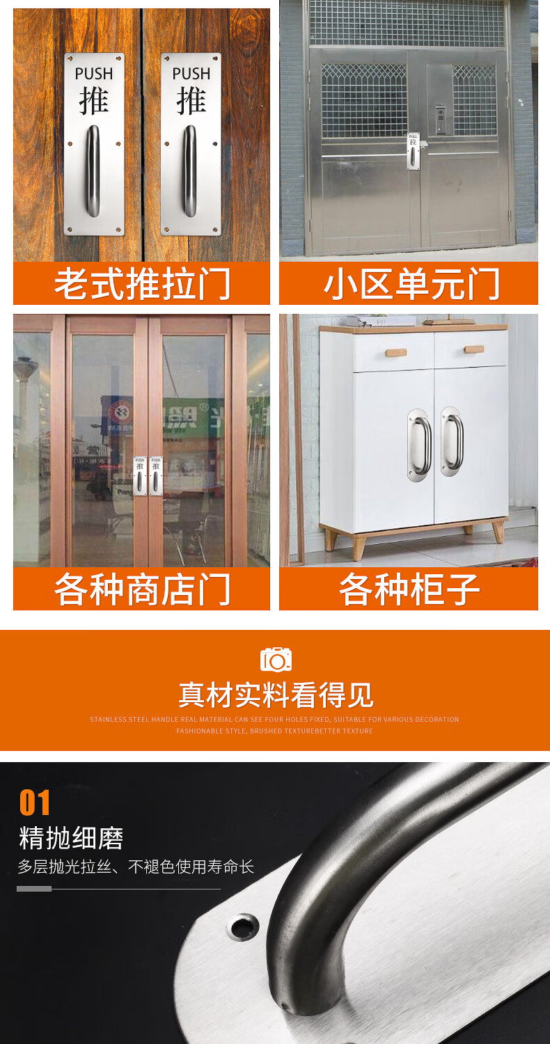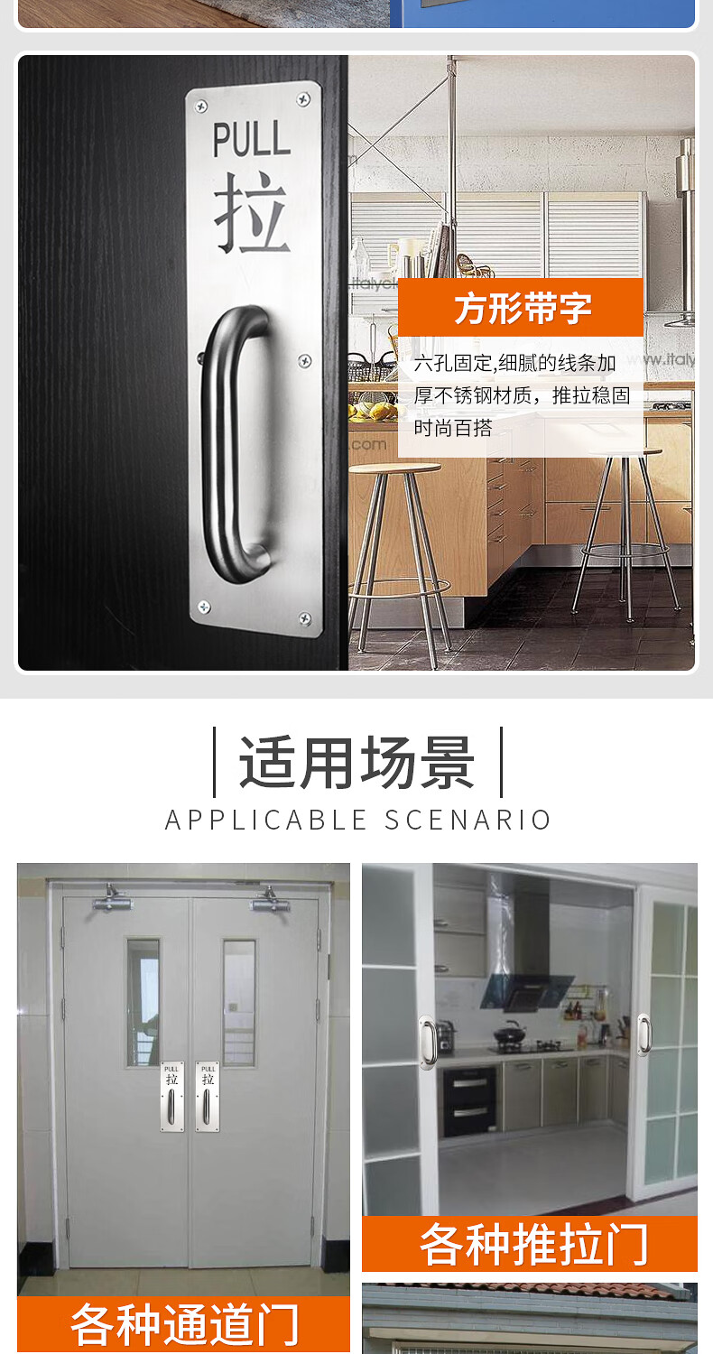 Thousand-speed wheel stainless steel push-pull door handle pull plate with word 300_100 pull word with handle