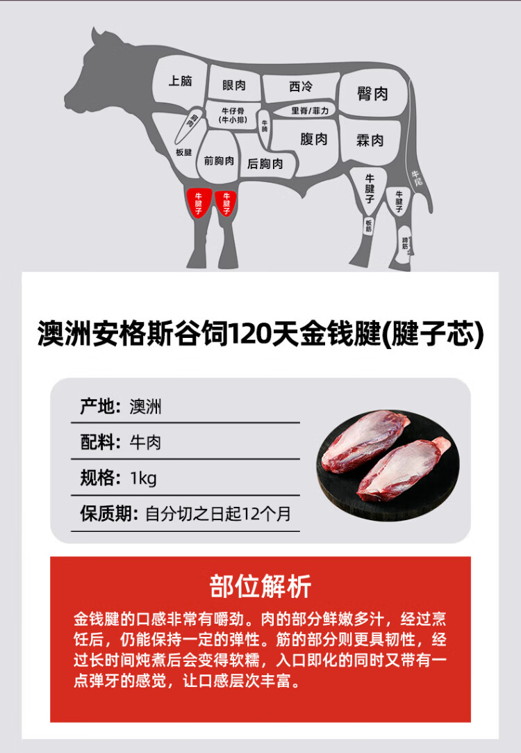 Australian Angus grain-fed 120-day tendon (tendon core) 2Jin Jin is equal to 0.5kg imported raw cut beef tendon