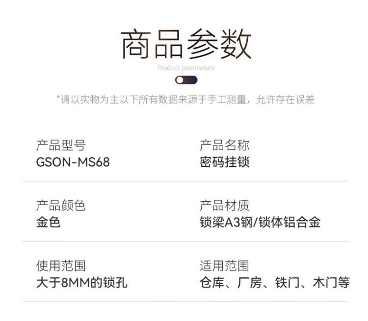 GSON combination lock padlock waterproof outdoor entrance door mechanical combination lock 1 pack