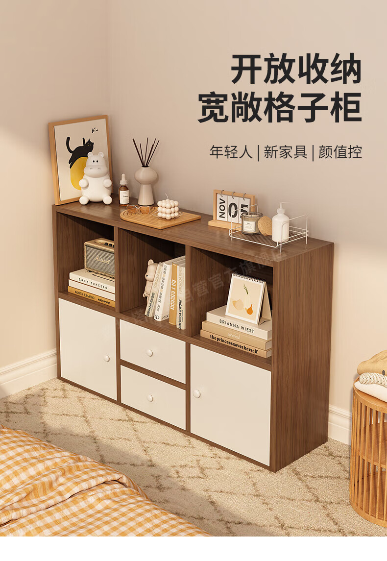 PULATA bookshelf storage cabinet integrated wall storage rack home living room study lattice shelf ecological board SG026623G32