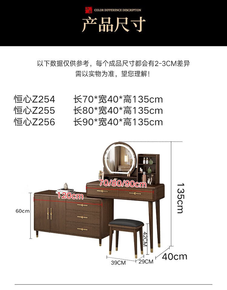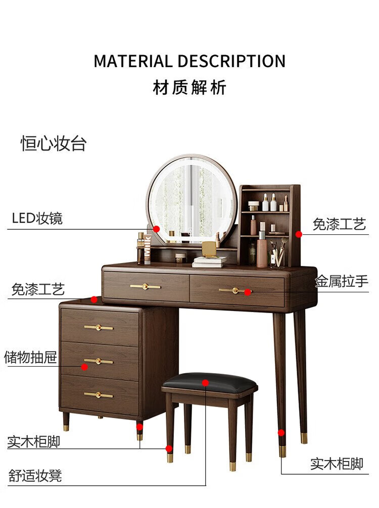 Qiuke solid wood dressing table storage cabinet dressing table bedroom new Chinese dressing table modern simple drawer cabinet integrated dressing table