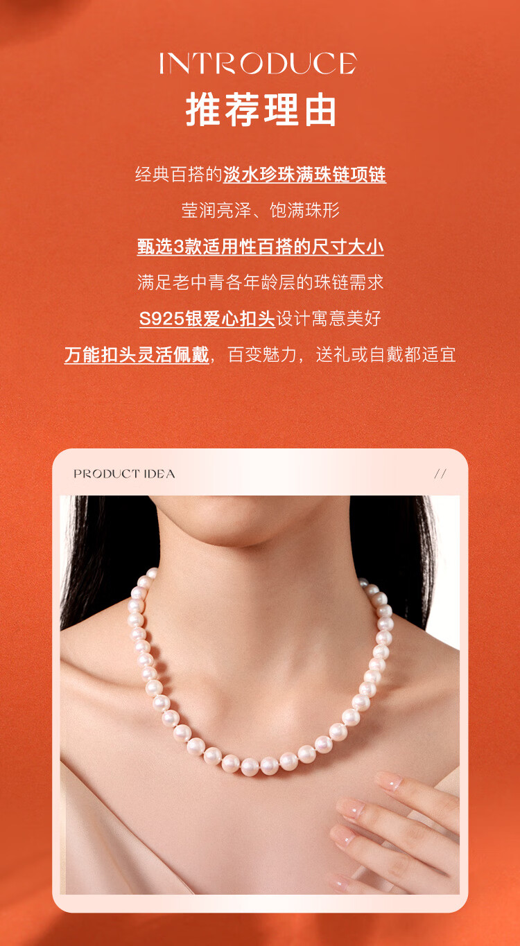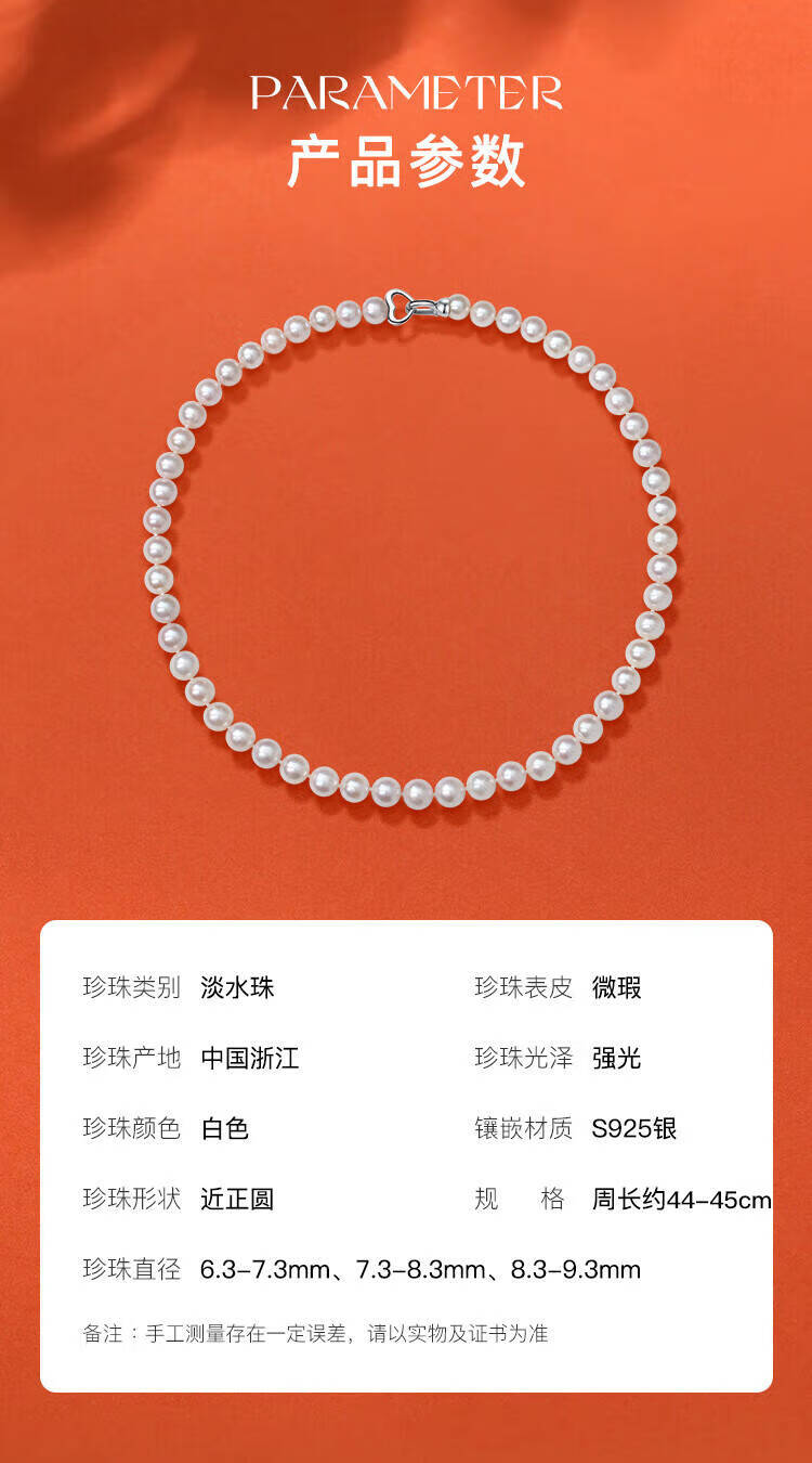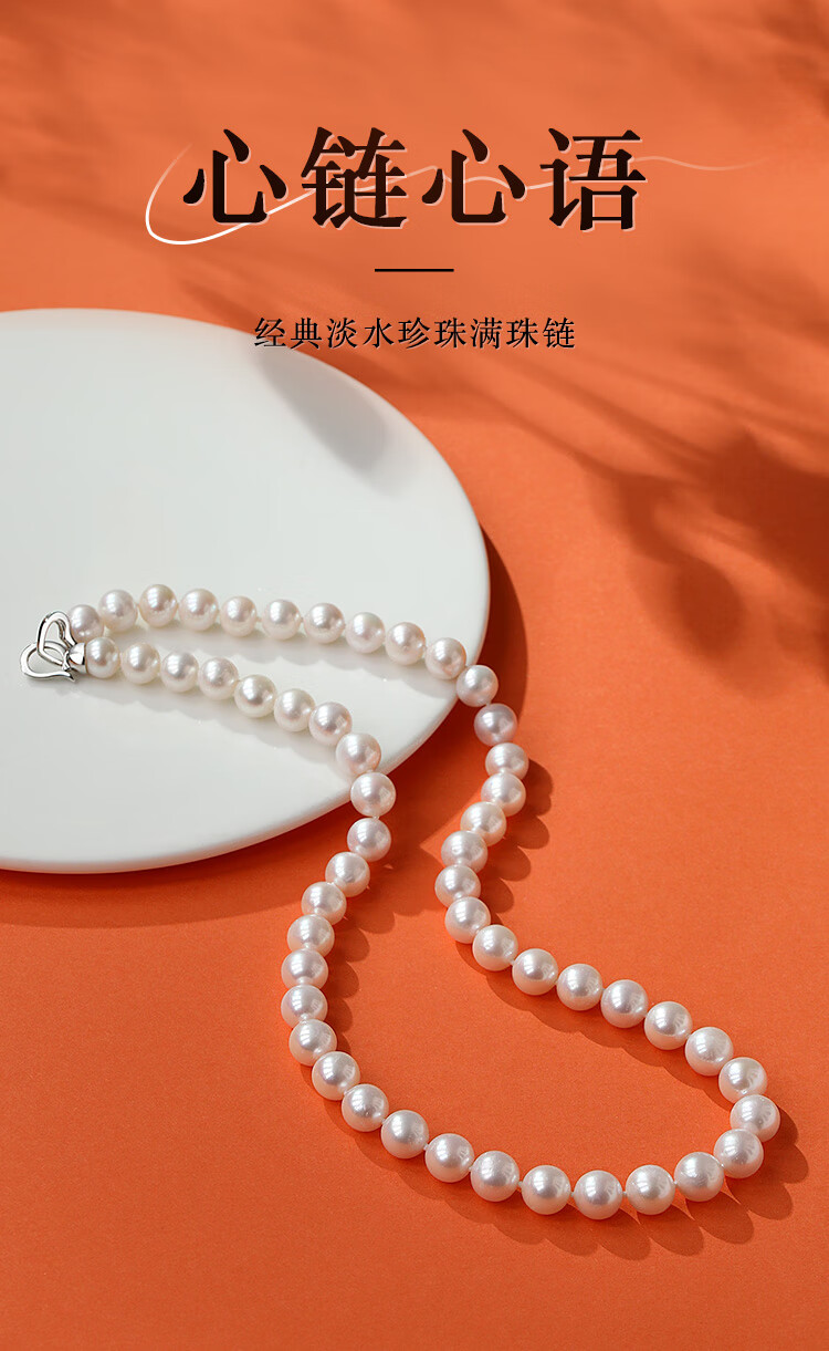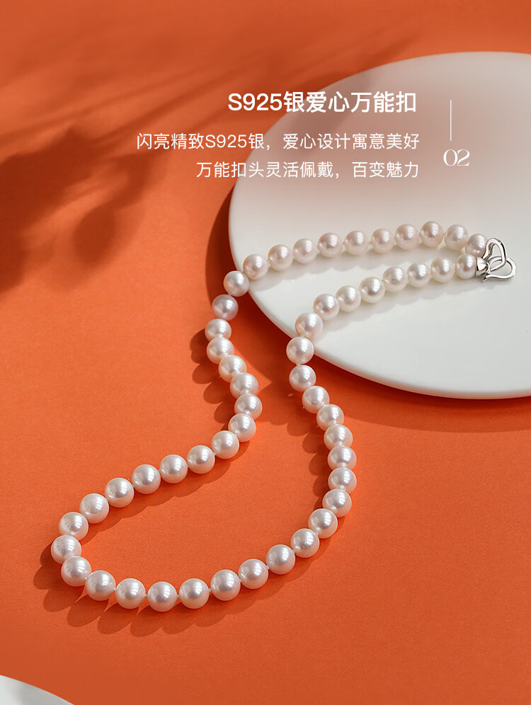 Pearl Queen Yunhua Freshwater Pearl Necklace S925 Silver Love Button Full Bead Necklace Birthday Gift for Women
