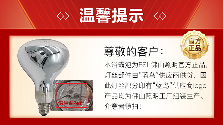 Foshan Lighting (FSL) fast heating waterproof and explosion-proof infrared bathroom light bulb E27 lamp head 275W long diameter
