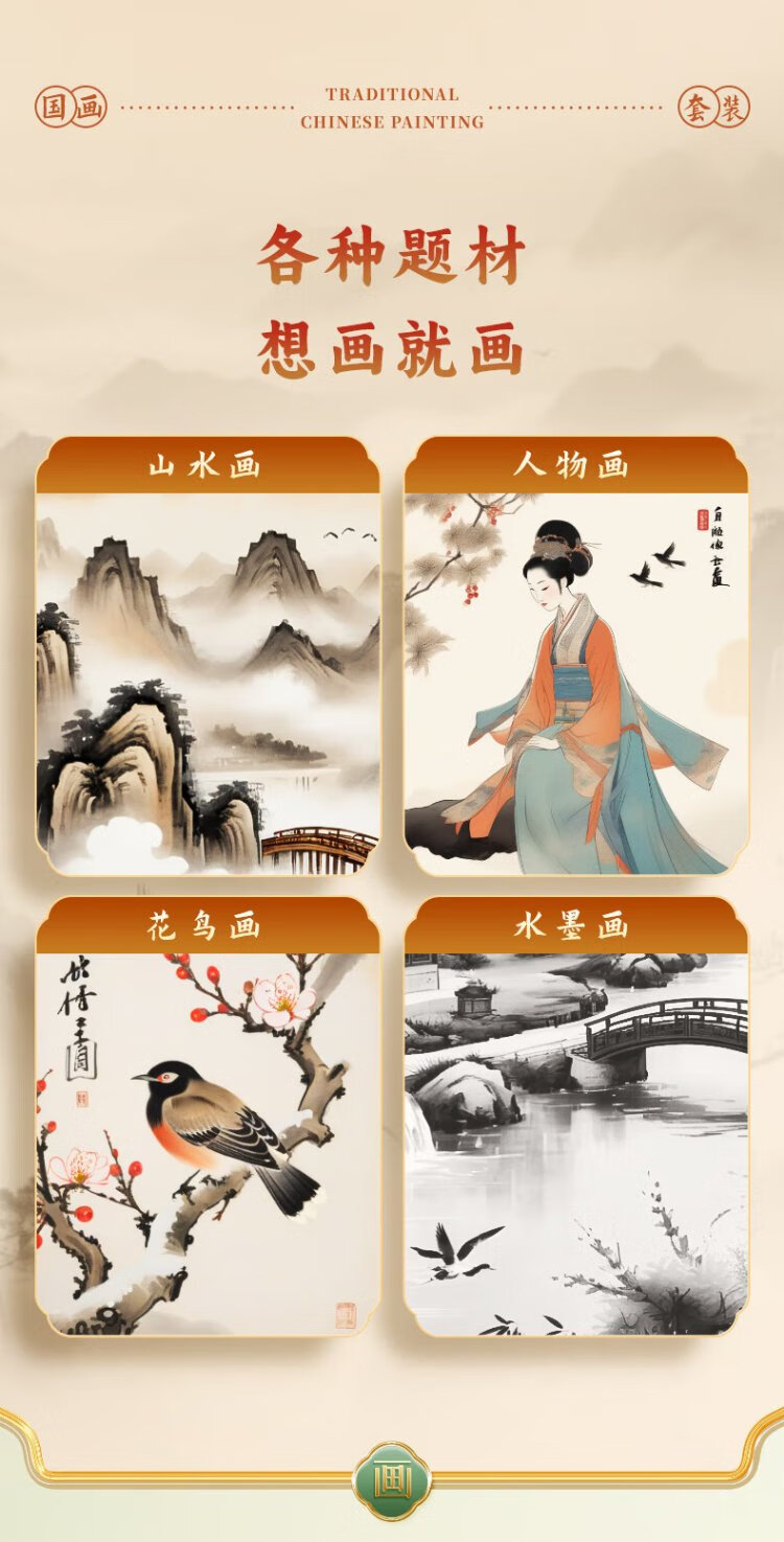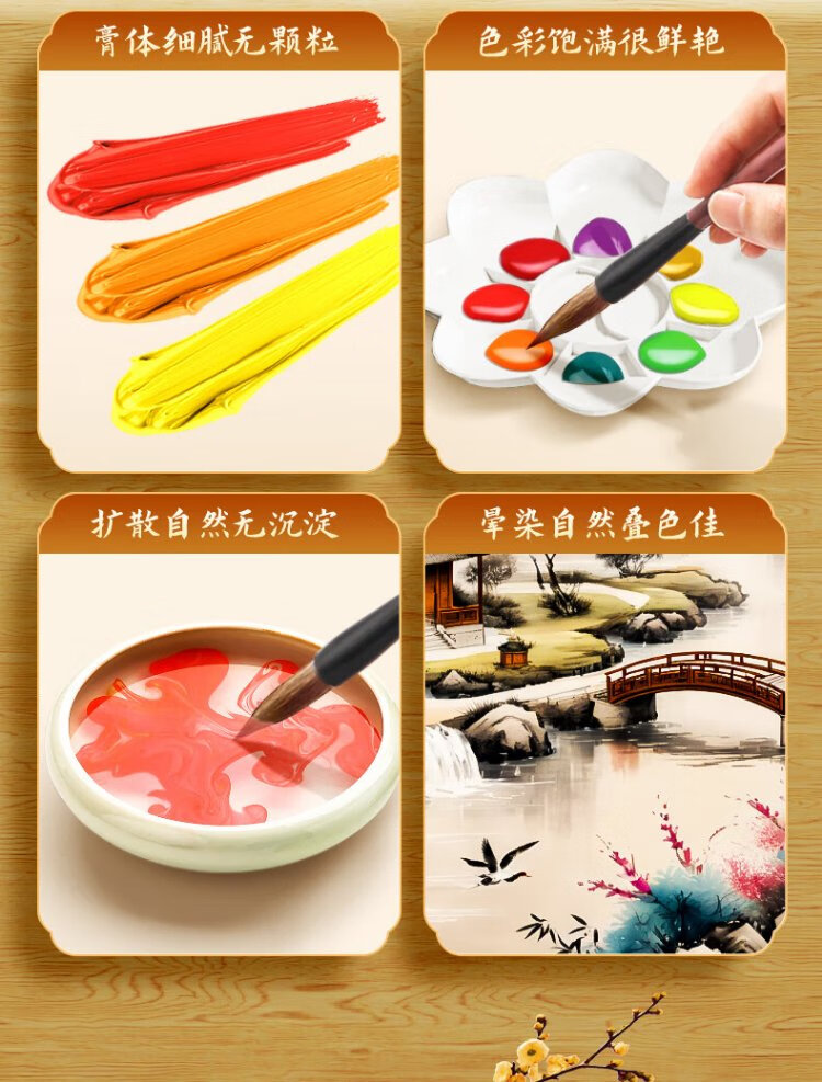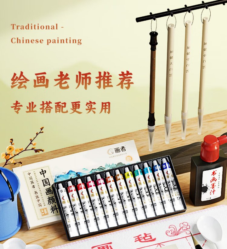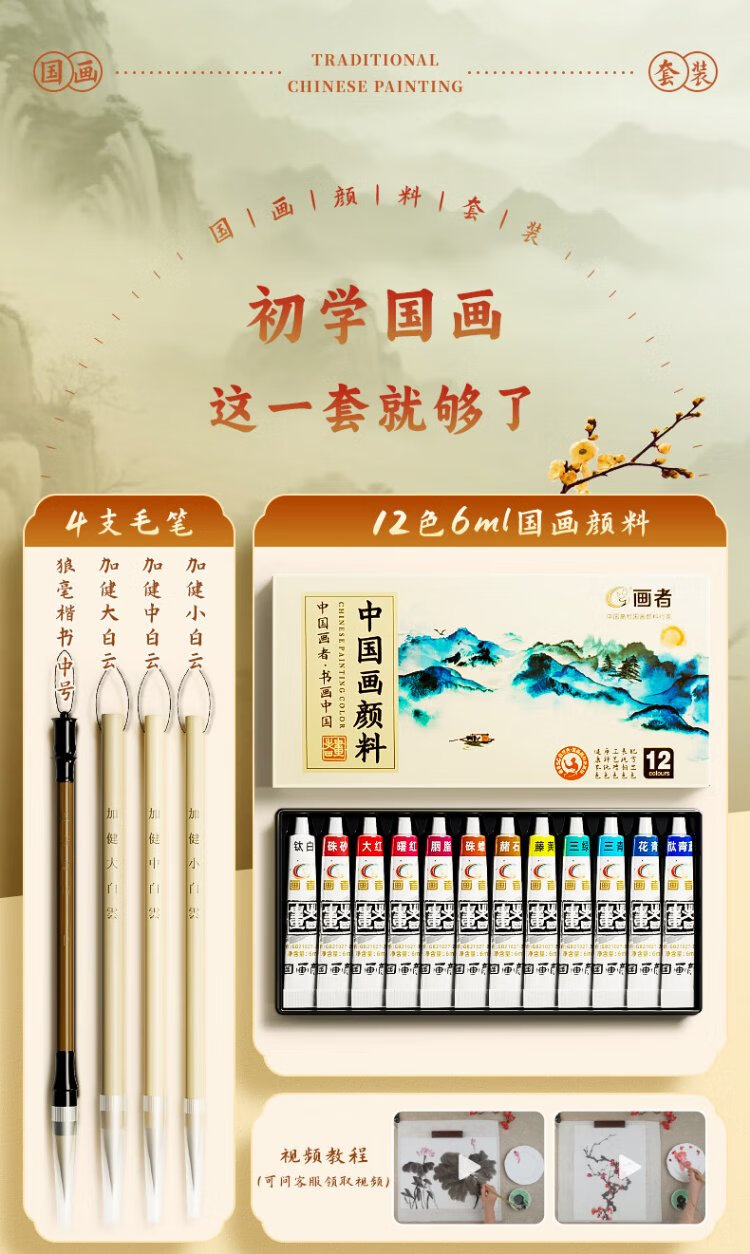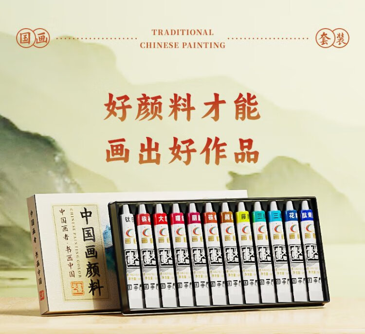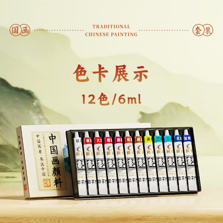 Benyi 12 Color Chinese Painting Set Chinese Painting Pigments Beginner Set Chinese Painting Supplies Tools Complete Set of Ink Painting for Primary School Students and Children Entry-Level Professional Advanced Meticulous Painting