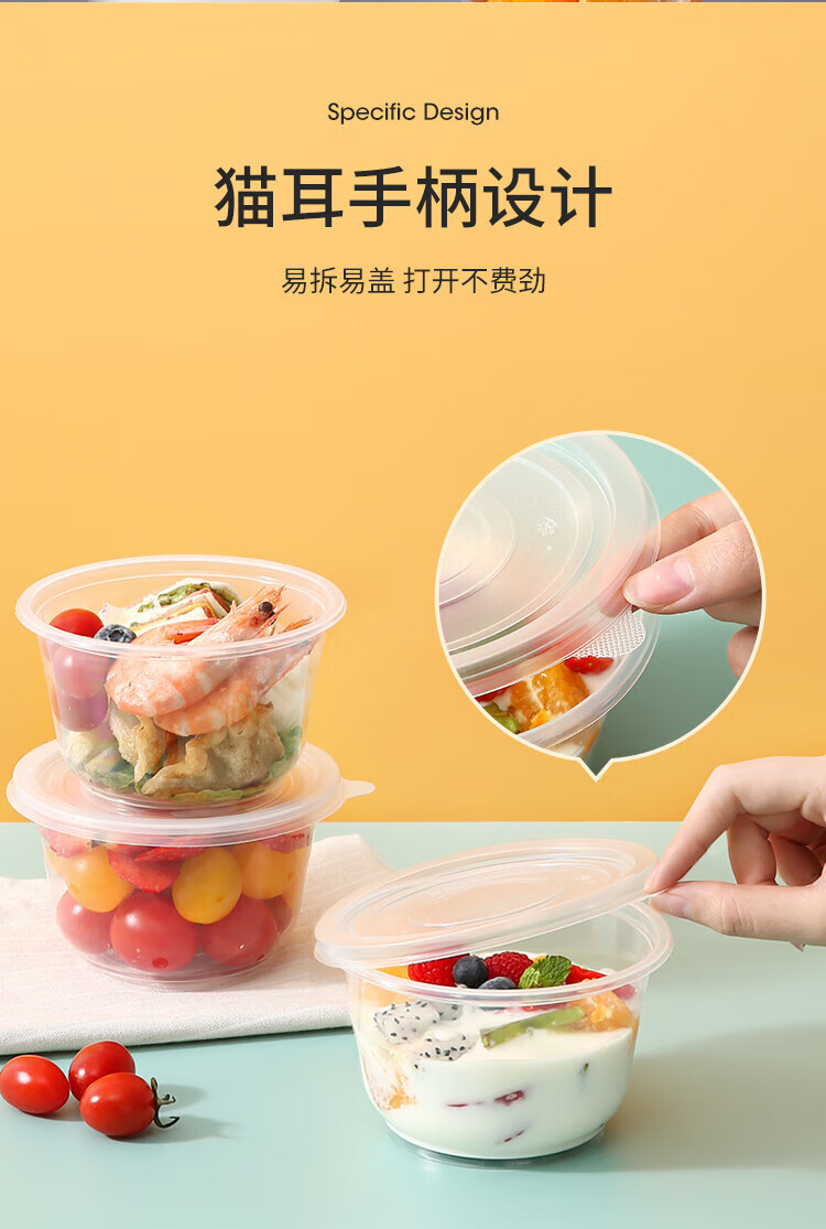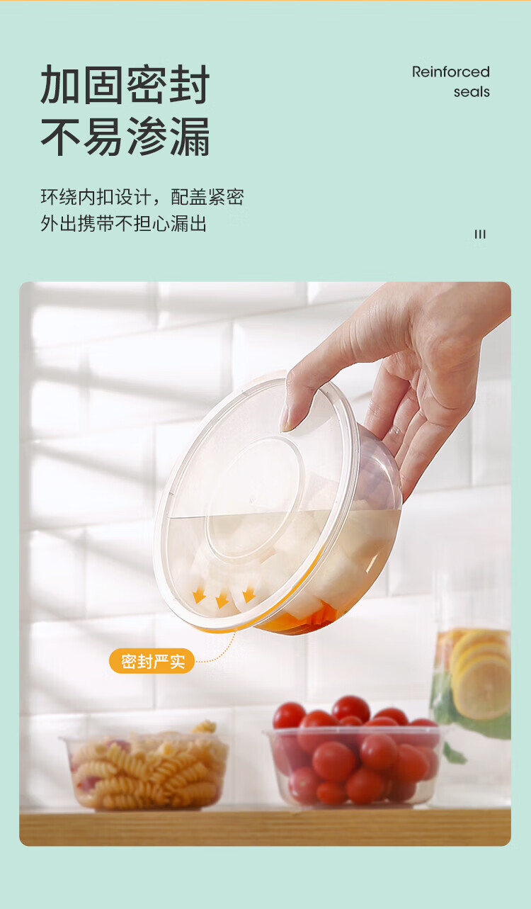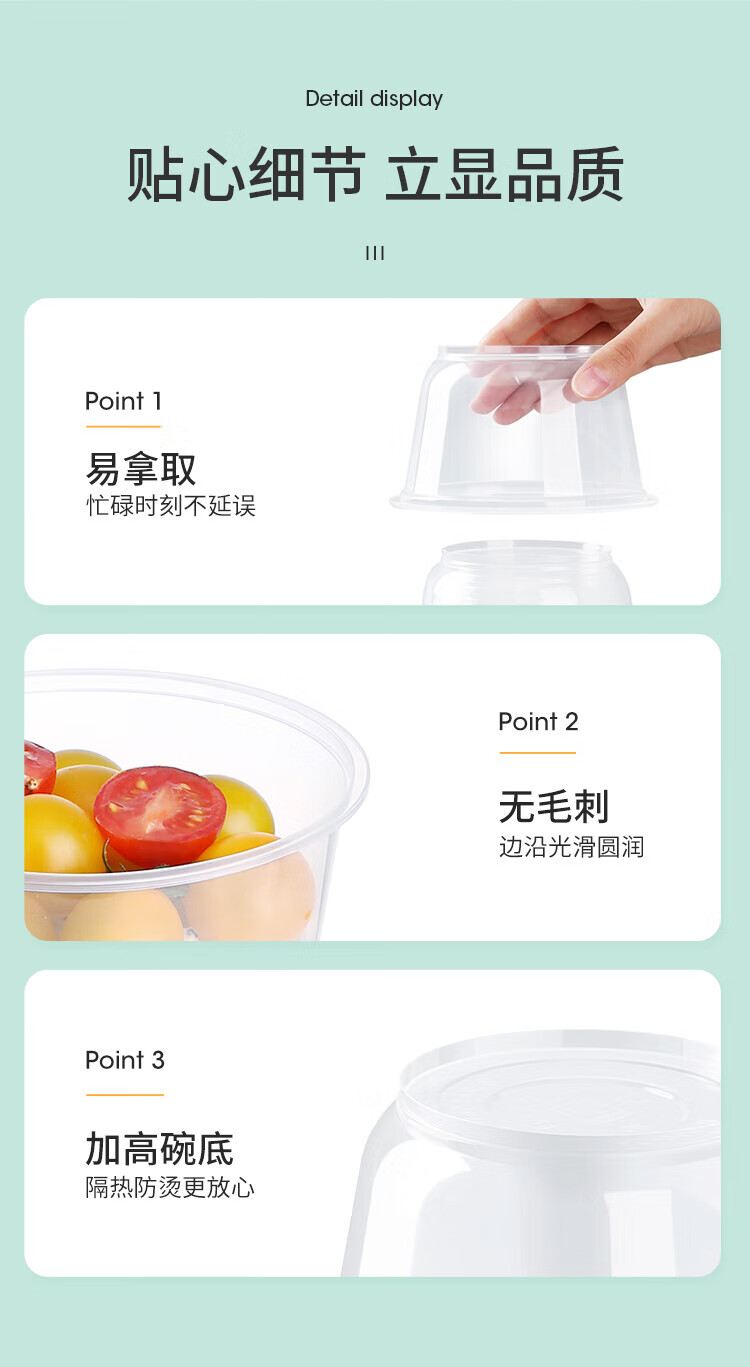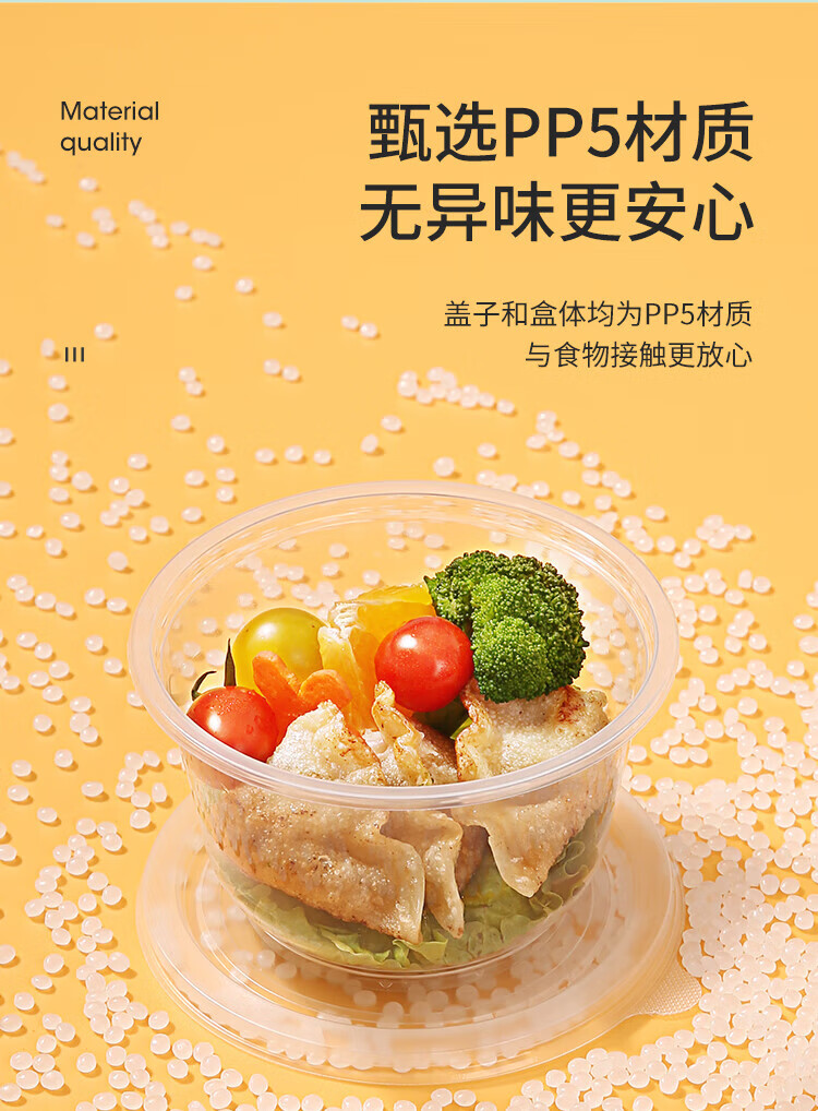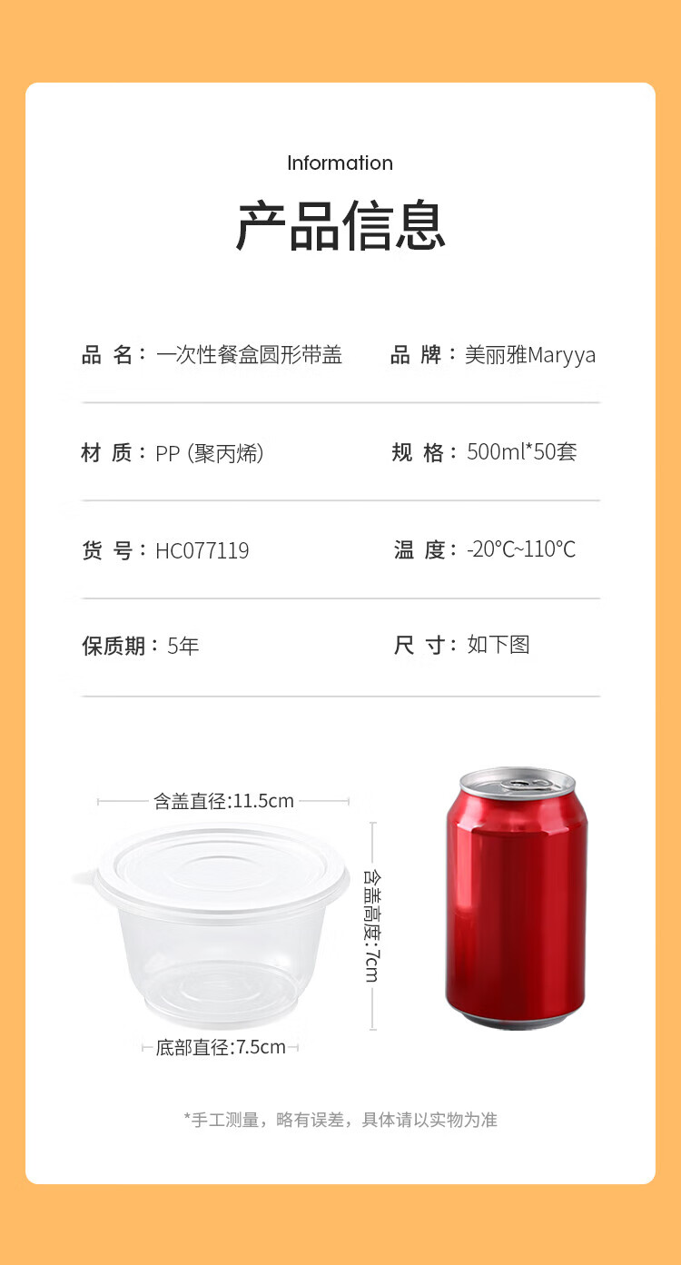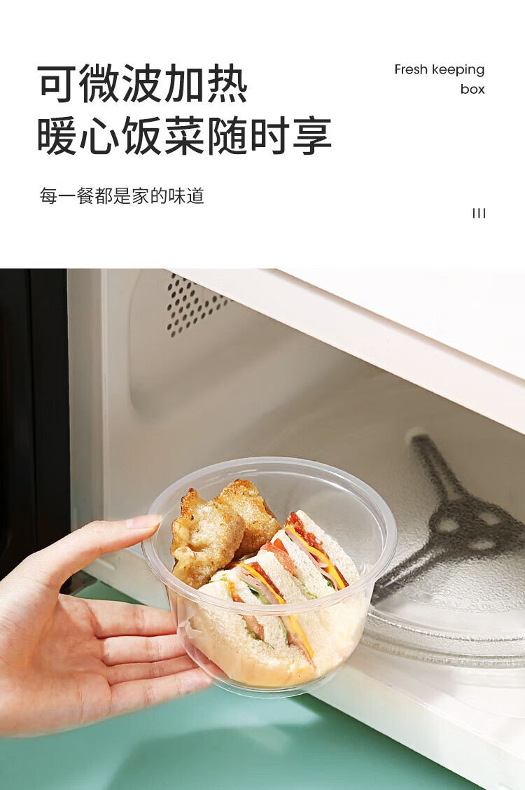 Meiya disposable lunch boxes 500ml*50 sets of food-grade packed lunch boxes with lids, round bowls, microwaveable