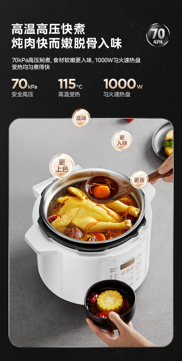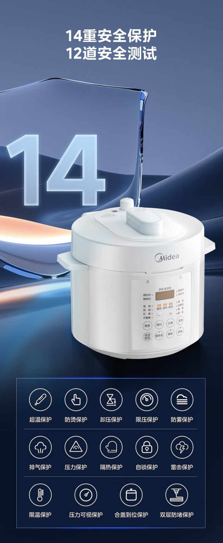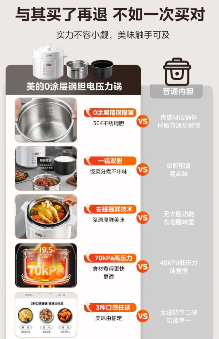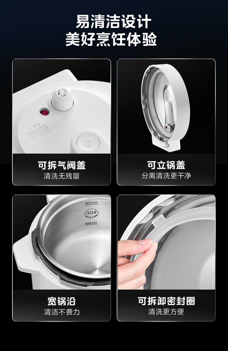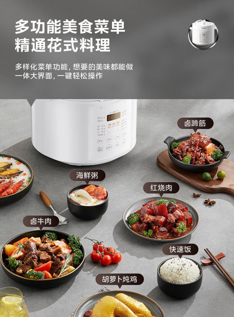 Midea National Subsidy 0-Coating Electric Pressure Cooker 5L Dual-Bile Household Use for 4-6 People Fully Automatic Intelligent Reservation Open-Lid Hot Pot MY-E5622 Rice Cooker Pressure Cooker
