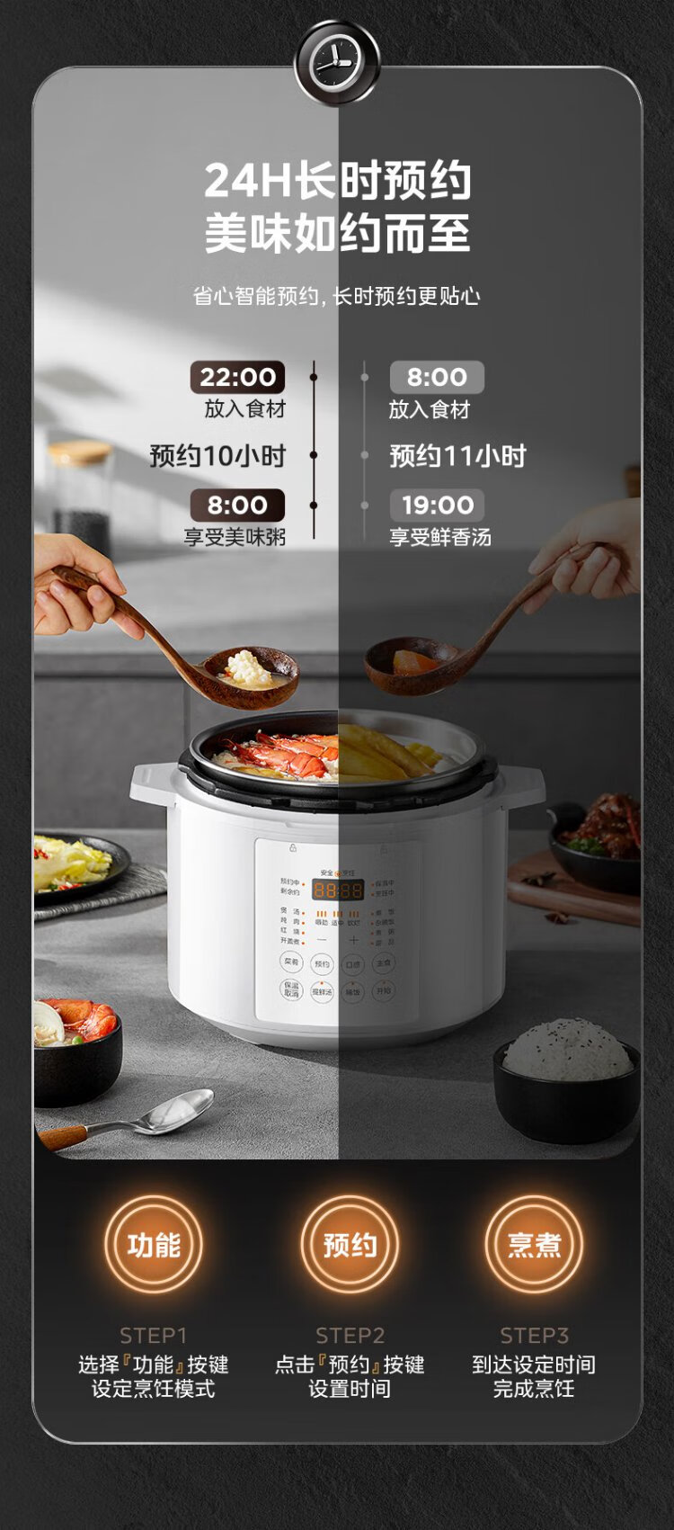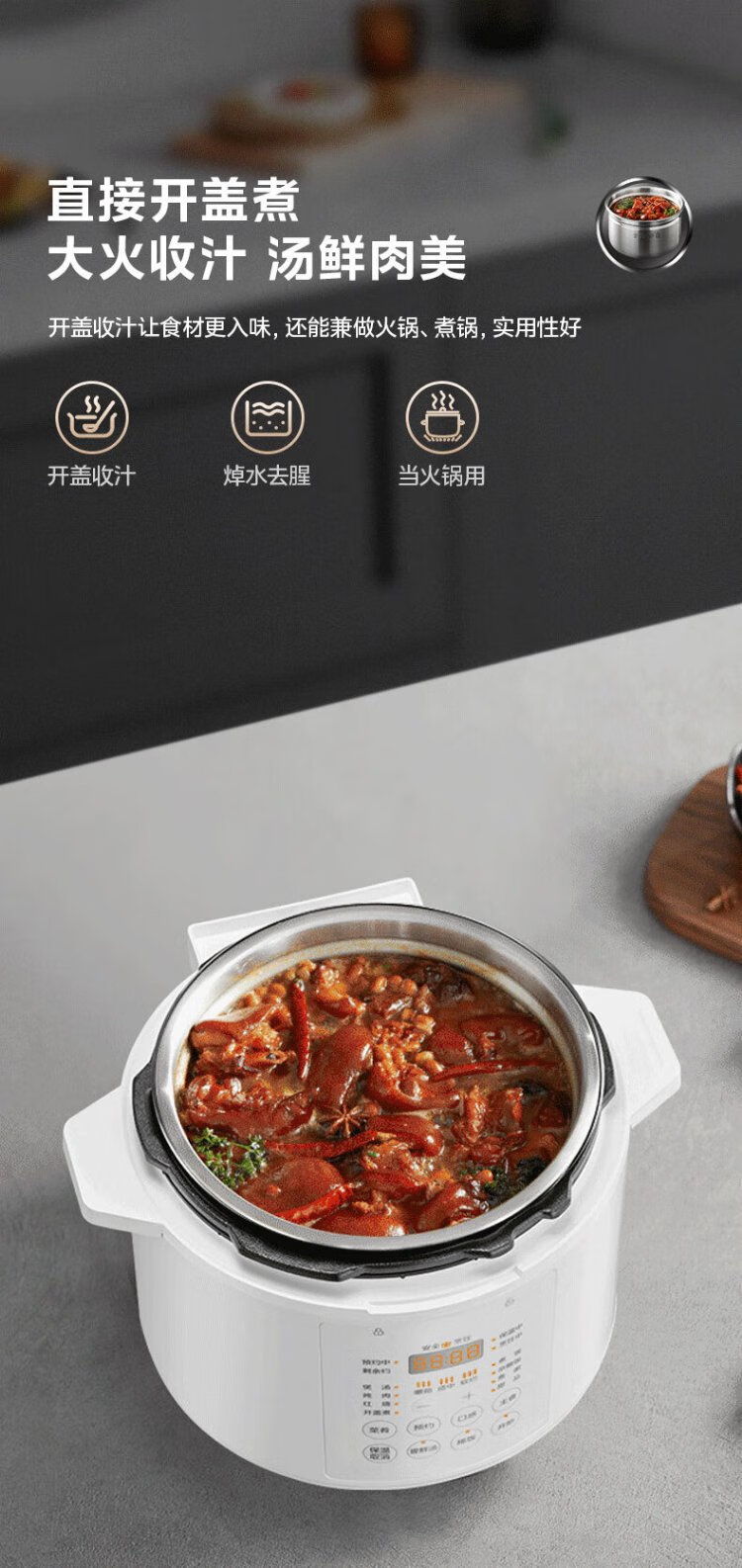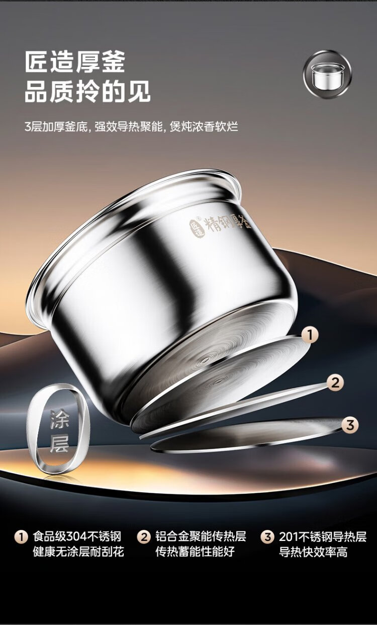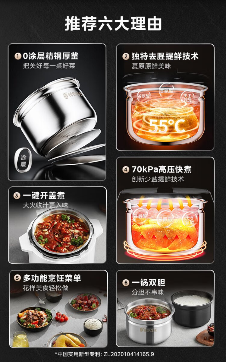 Midea National Subsidy 0-Coating Electric Pressure Cooker 5L Dual-Bile Household Use for 4-6 People Fully Automatic Intelligent Reservation Open-Lid Hot Pot MY-E5622 Rice Cooker Pressure Cooker