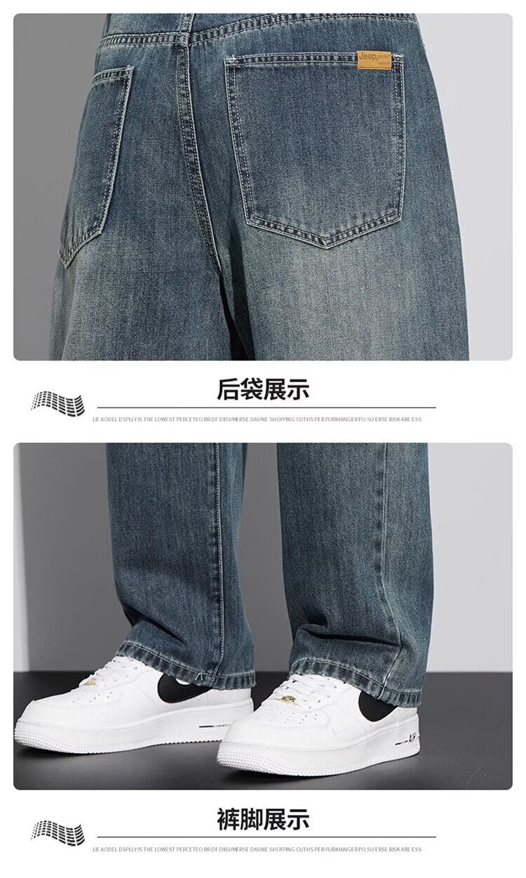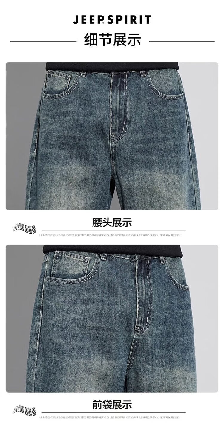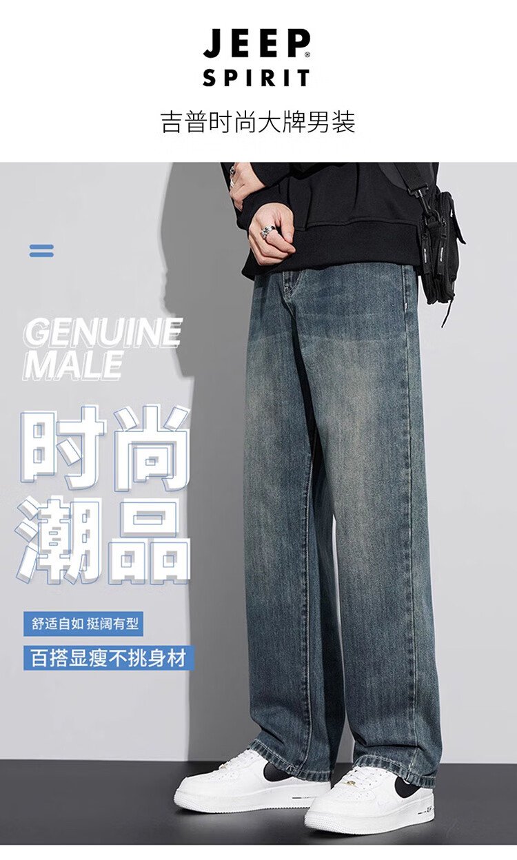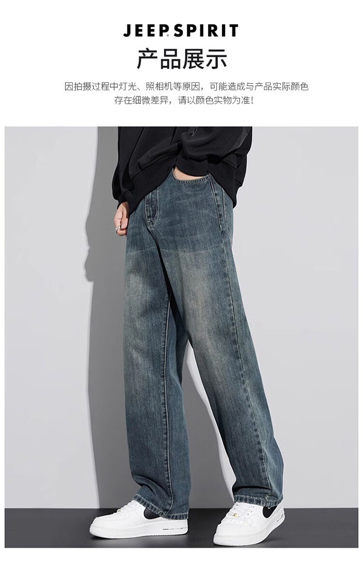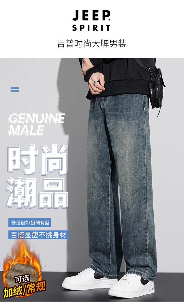 JEEP SPIRIT Jeep jeans men's wide-leg autumn and winter casual pants men's straight loose men's trousers retro blue 33