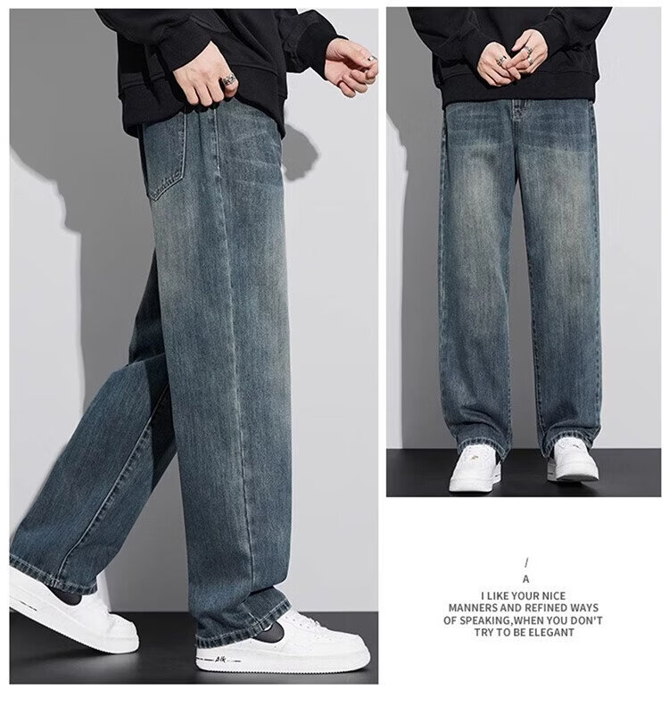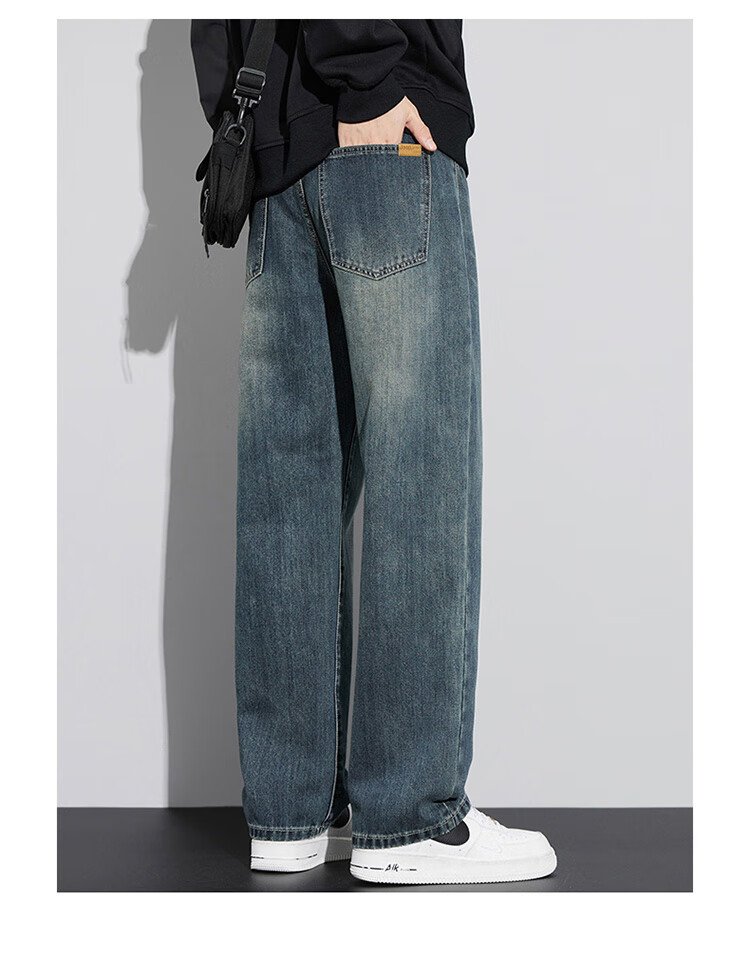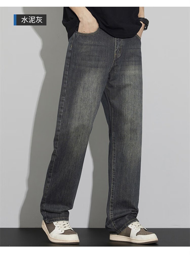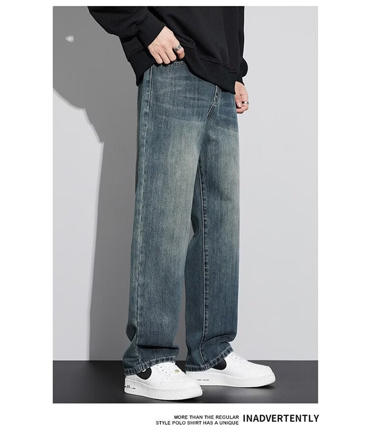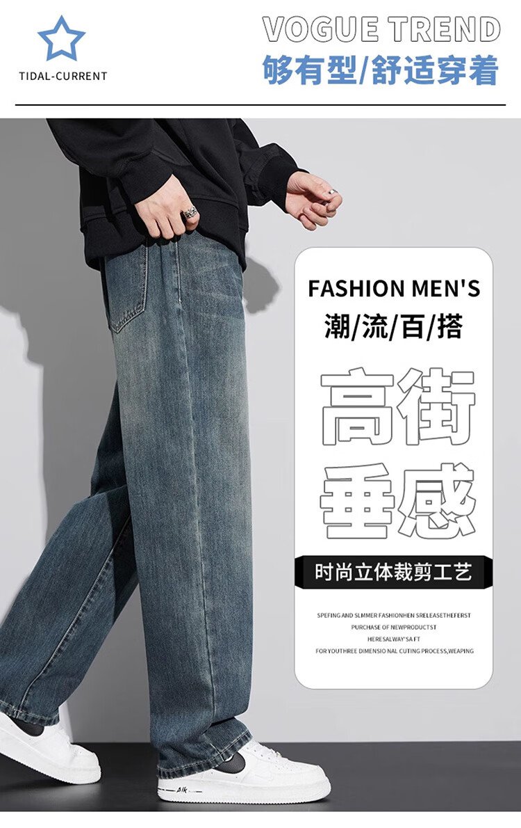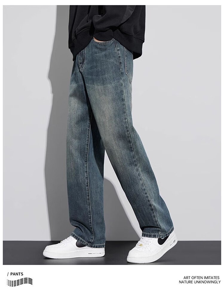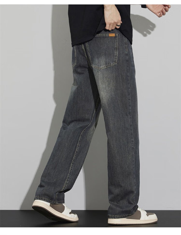 JEEP SPIRIT Jeep jeans men's wide-leg autumn and winter casual pants men's straight loose men's trousers retro blue 33
