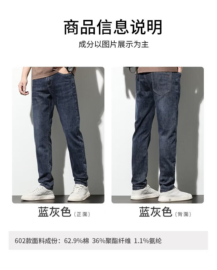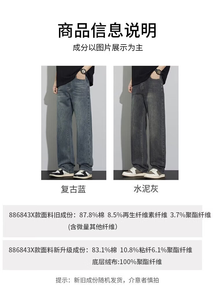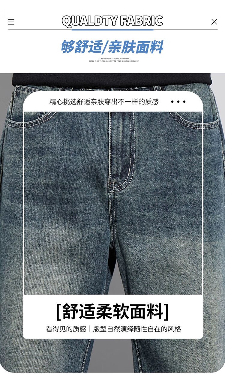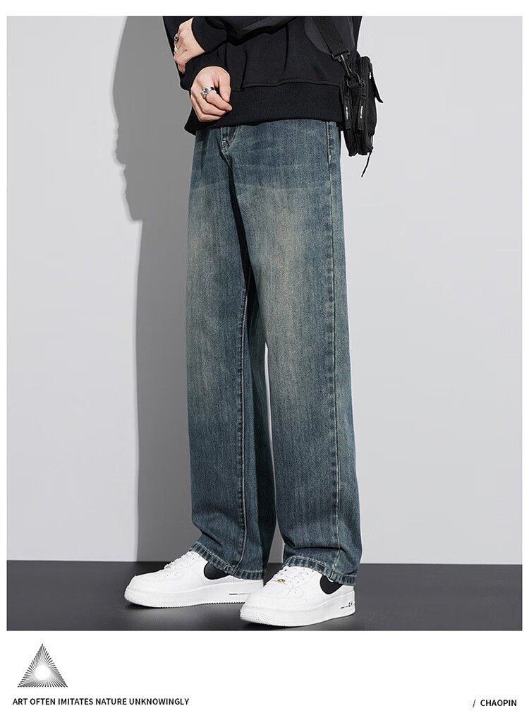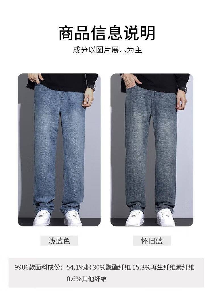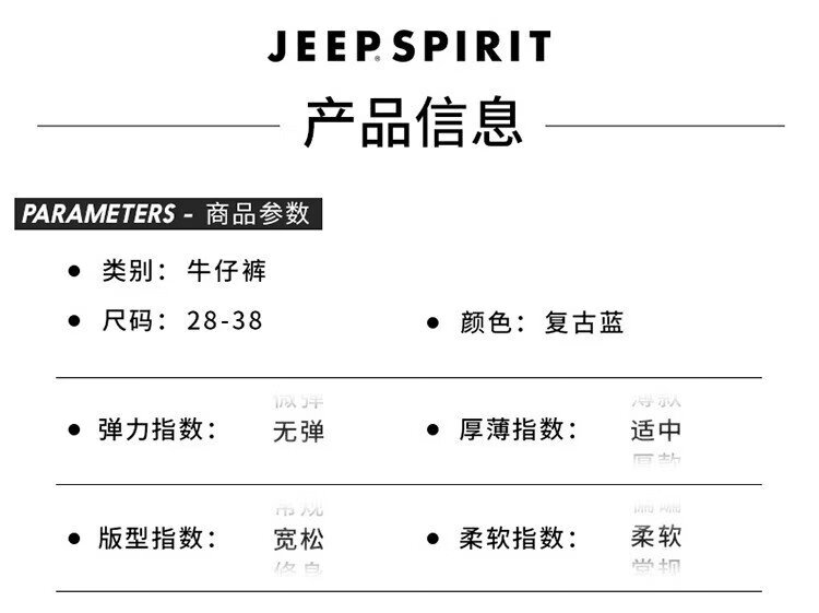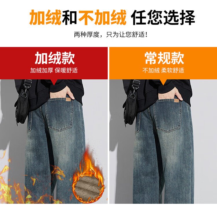 JEEP SPIRIT Jeep jeans men's wide-leg autumn and winter casual pants men's straight loose men's trousers retro blue 33