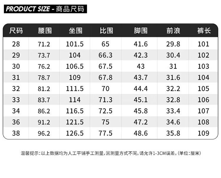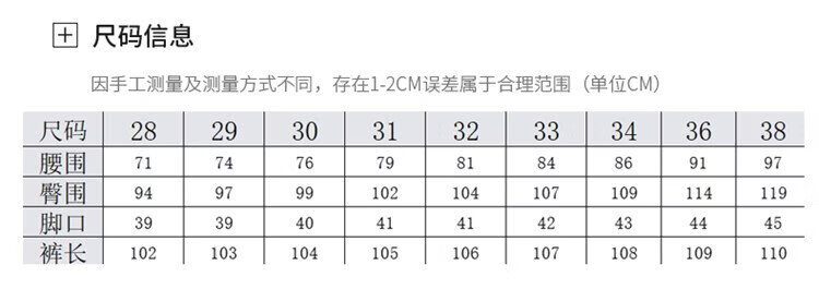 USA(inch) 28-30 30-32 32-34 34-38 38-42