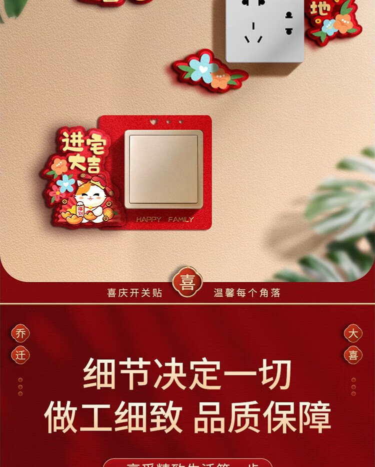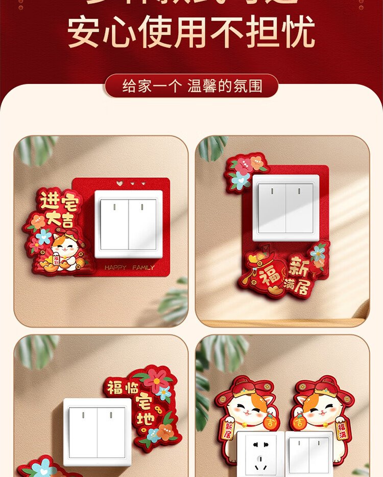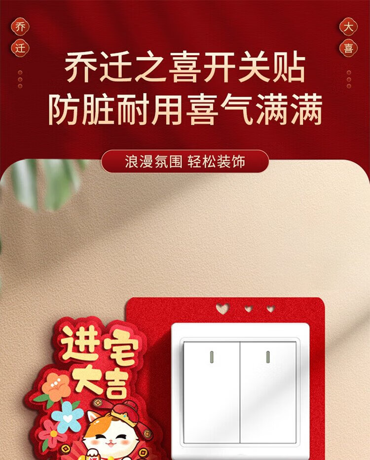 Gong Xun's housewarming ceremony, full set of socket switch stickers, household cartoon new home moving gifts, cat style
