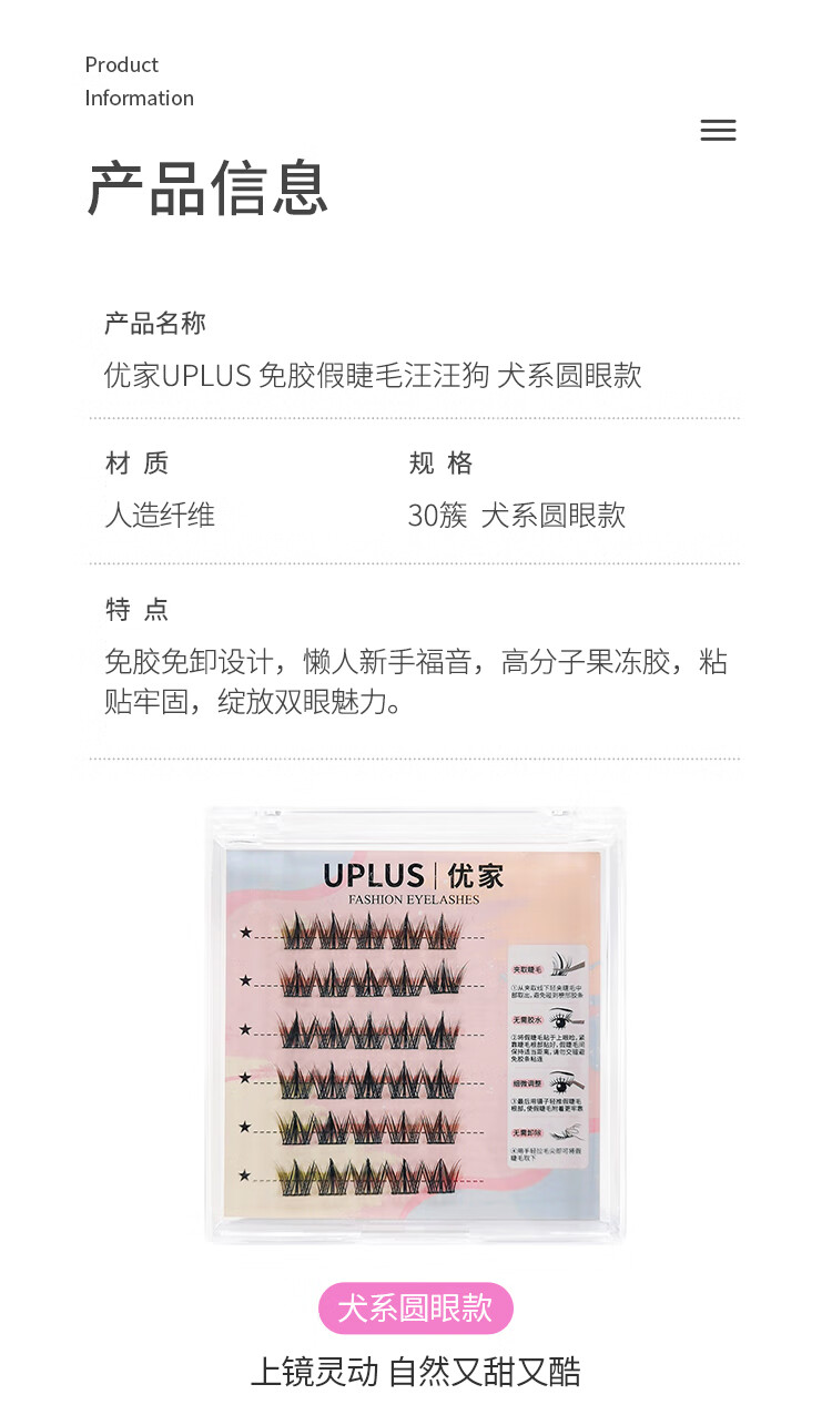 UPLUS barking dog glue-free false eyelashes for dogs with round eyes, natural and innocent pure desire dog eyelashes self-adhesive