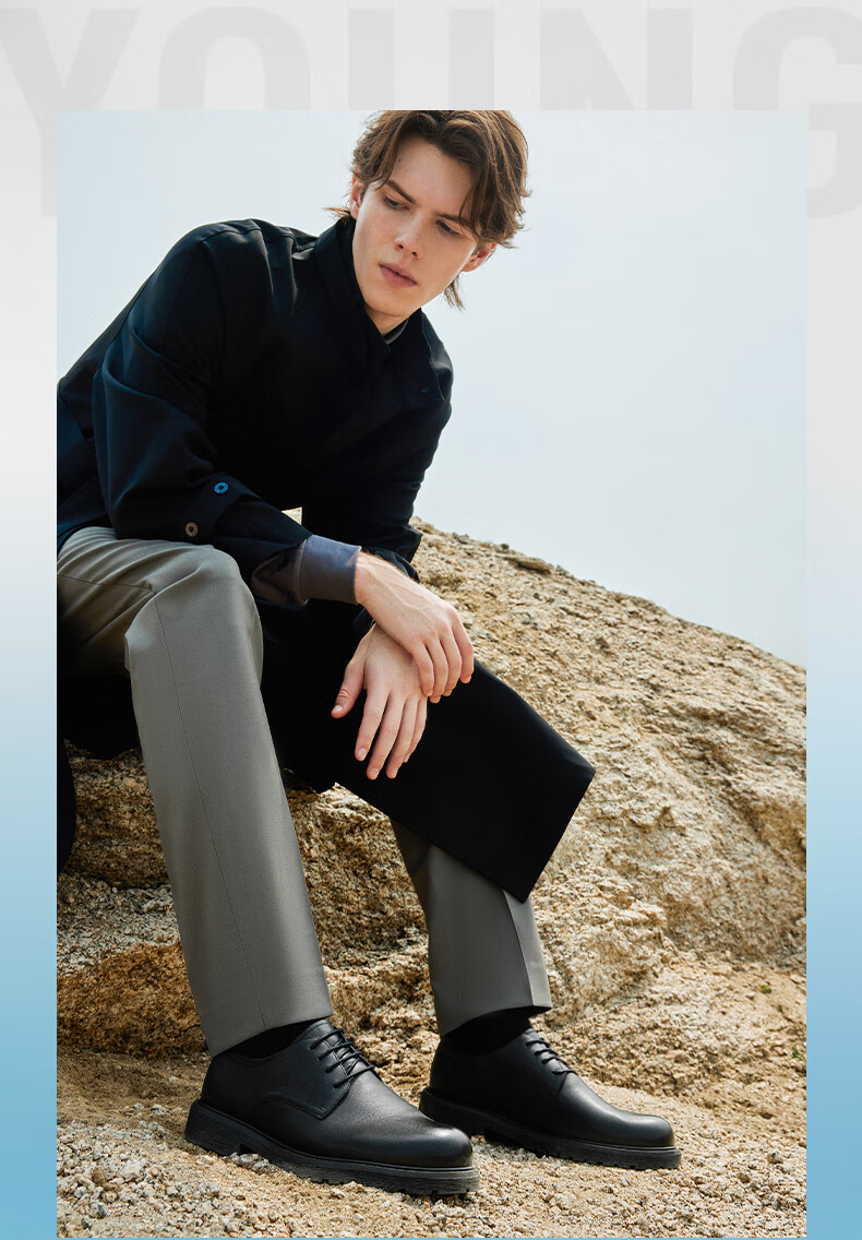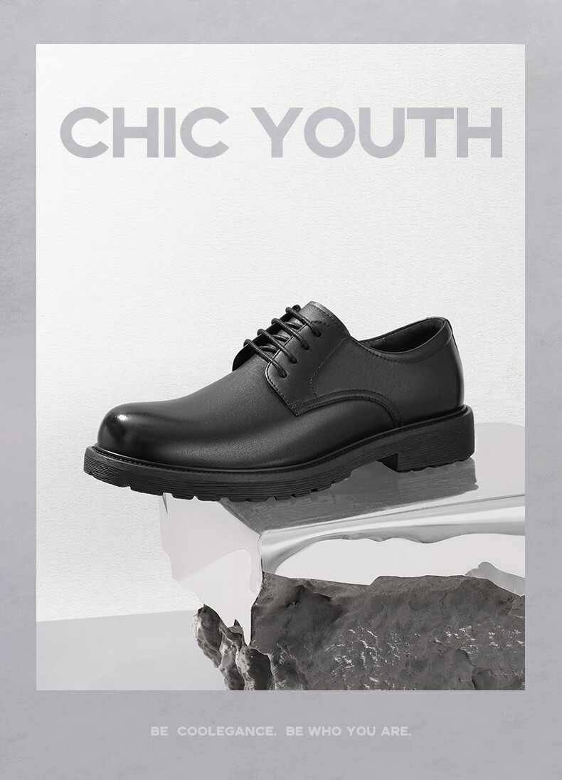 Belle commuter business leather shoes men's formal shoes spring and summer lace-up heightening youth leather shoes A1208CM3 black 42