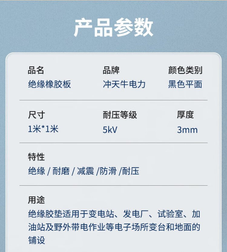 冲天牛 高压绝缘垫配电房 5kv 3mm 1m*1m 黑色平面 绝缘胶垫 橡胶垫 地垫胶皮胶板