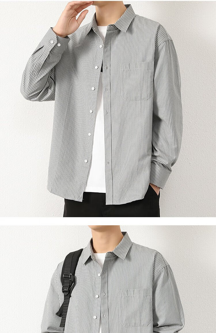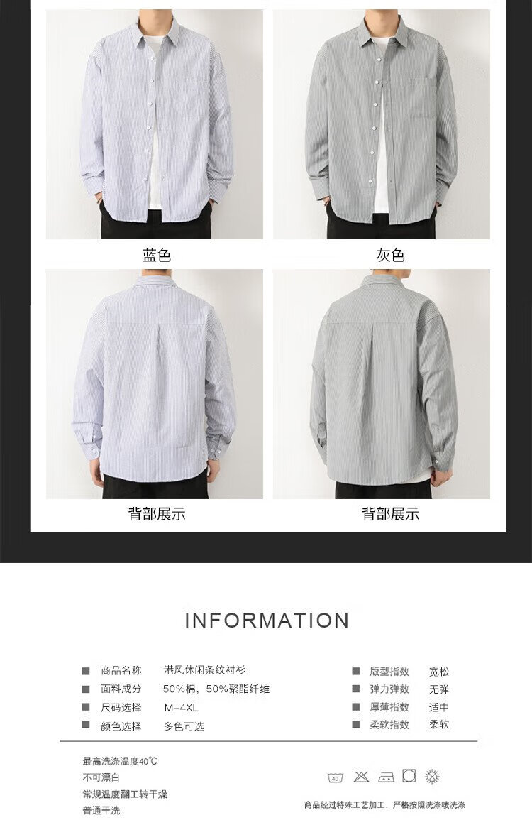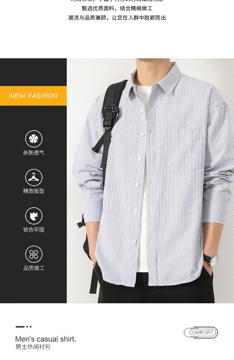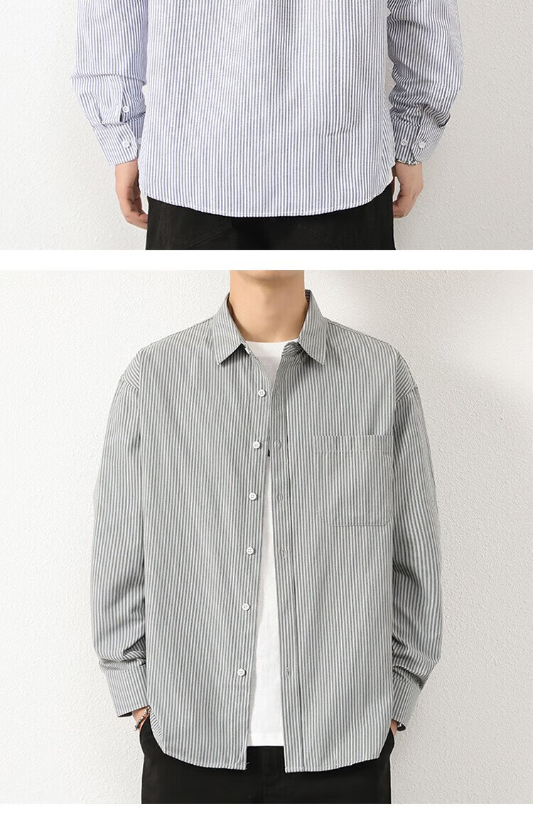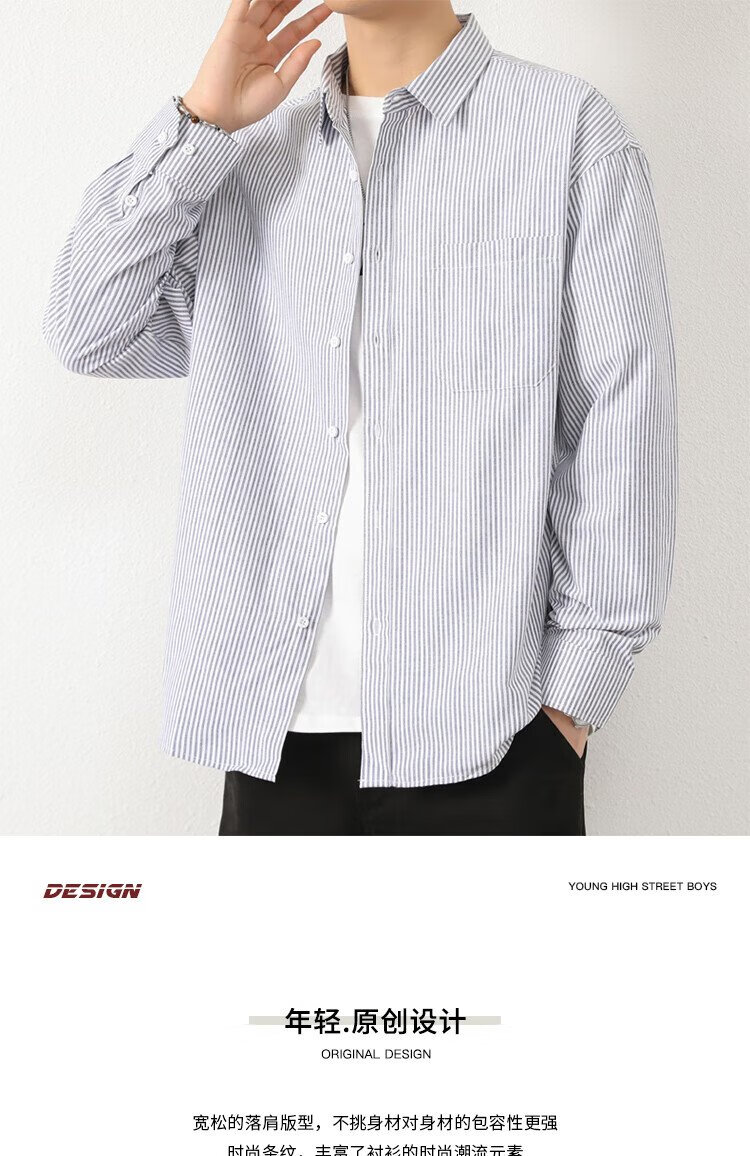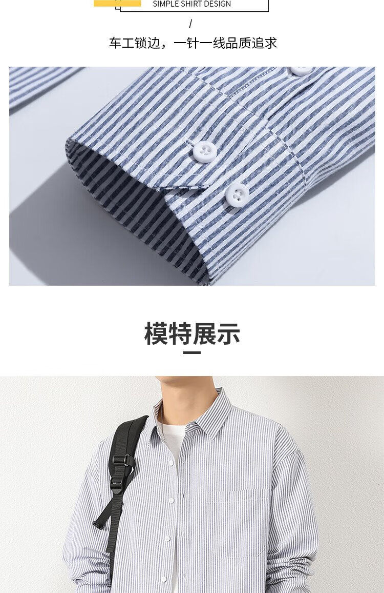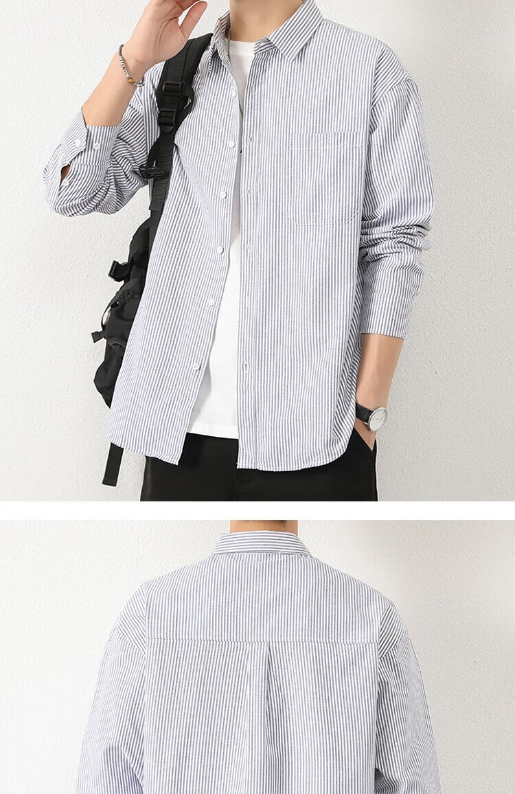 罗蒙(ROMON)条纹长袖衬衫男士牛津纺衬衫抗皱易打理休衬衣外套男蓝色L