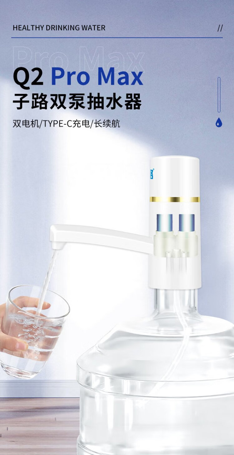 Zilu Electric Bottled Water Pump Double Pump Water Dispenser Discharges Water Faster and Longer Spout 2000ma Extra Large Battery
