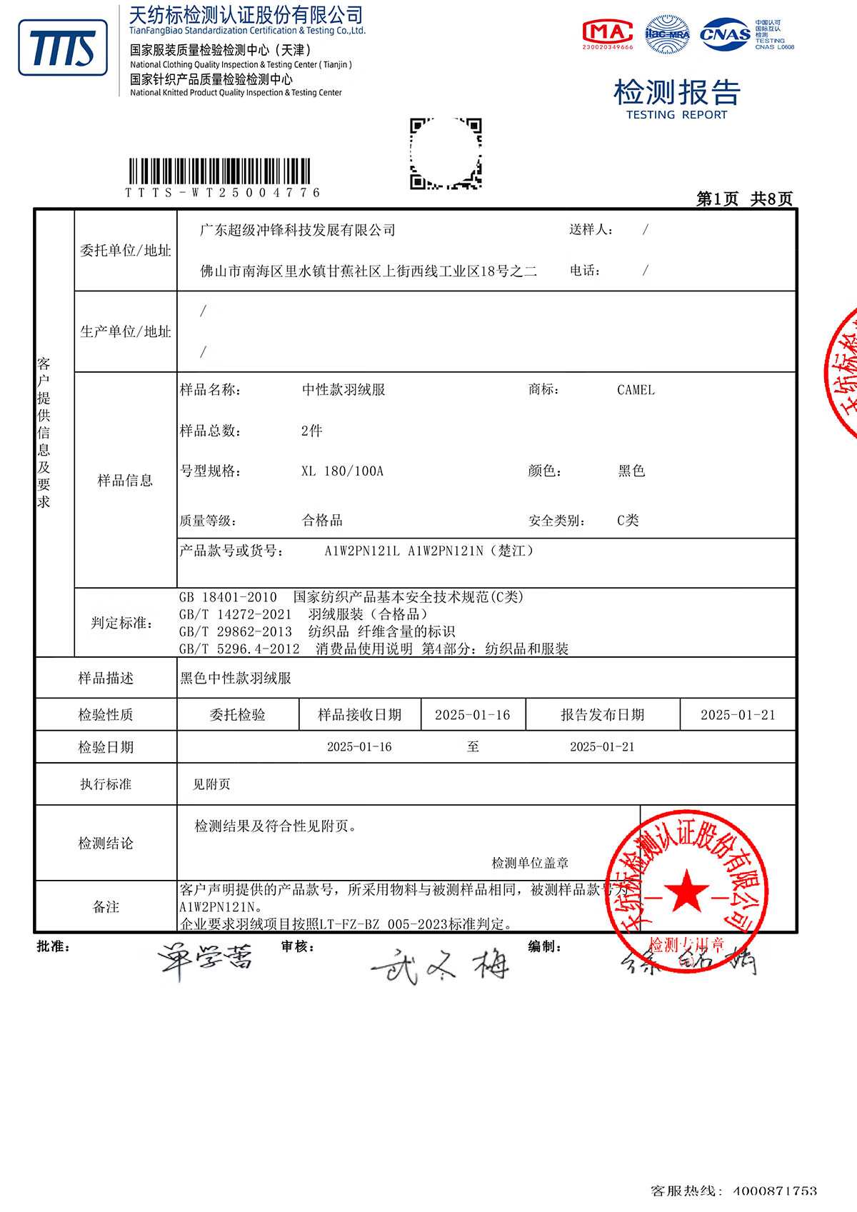 Camel (CAMEL) outdoor down jacket 600 puffs for men and women new short thick coat bread coat