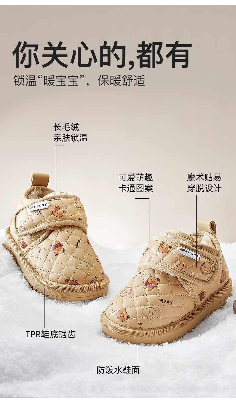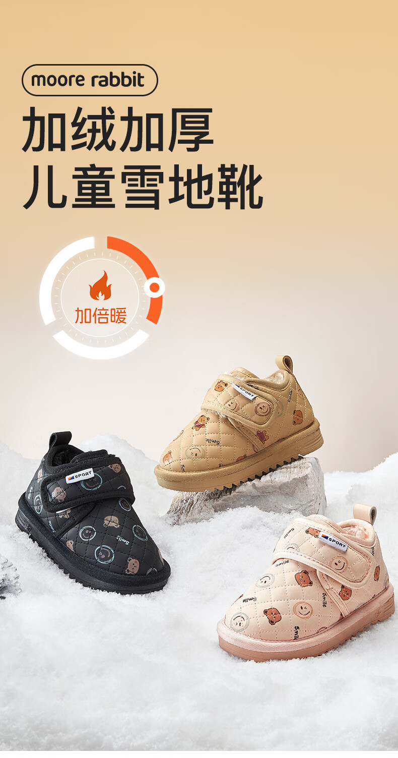 More Rabbit Children's Snow Boots Waterproof Men's and Women's Winter New Cotton Boots Plus Velvet Warm Children's Shoes Thickened