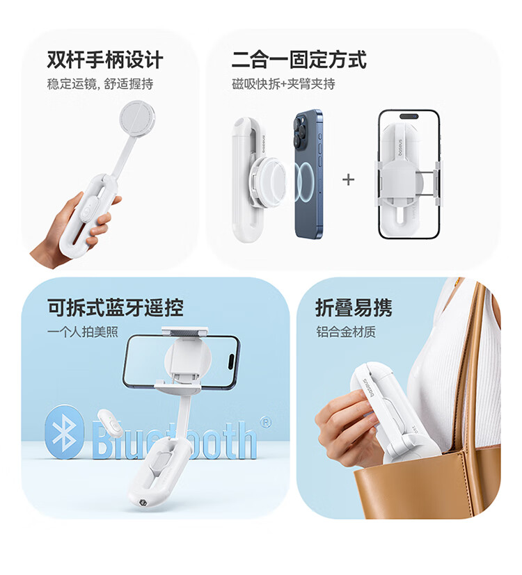 Baseus selfie stick gimbal mobile phone holder integrated travel photo artifact multi-functional Bluetooth portable handheld mini suitable for Huawei/Apple mobile phones to shoot concerts