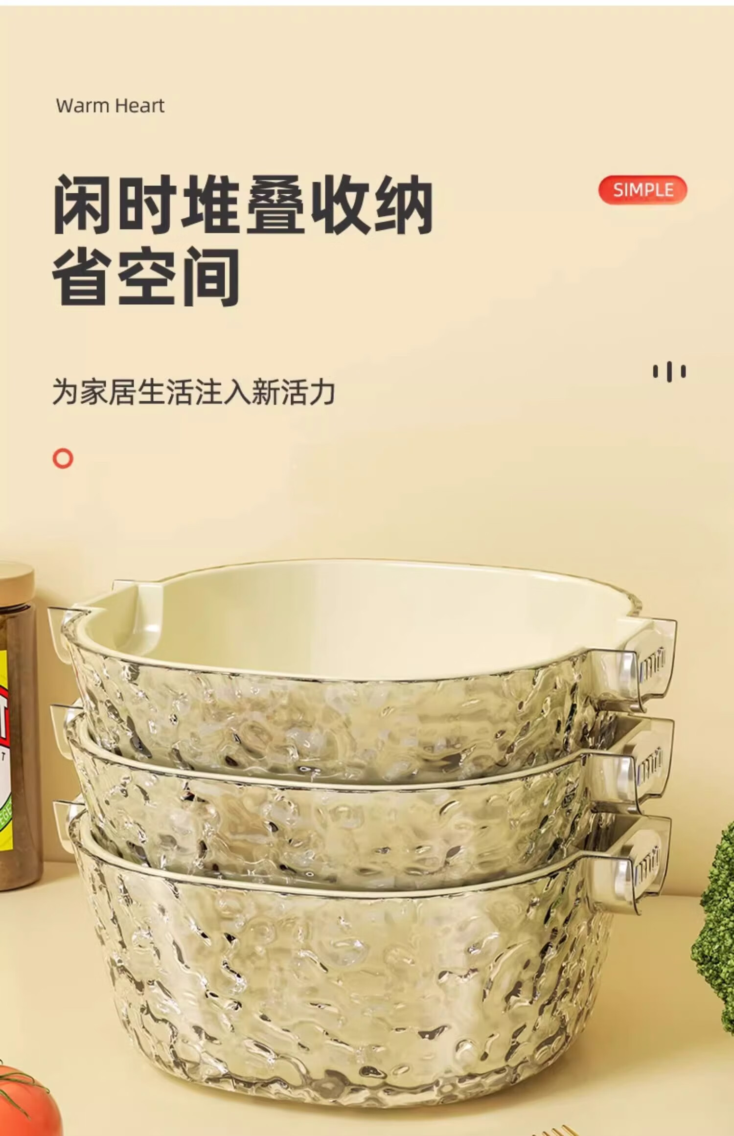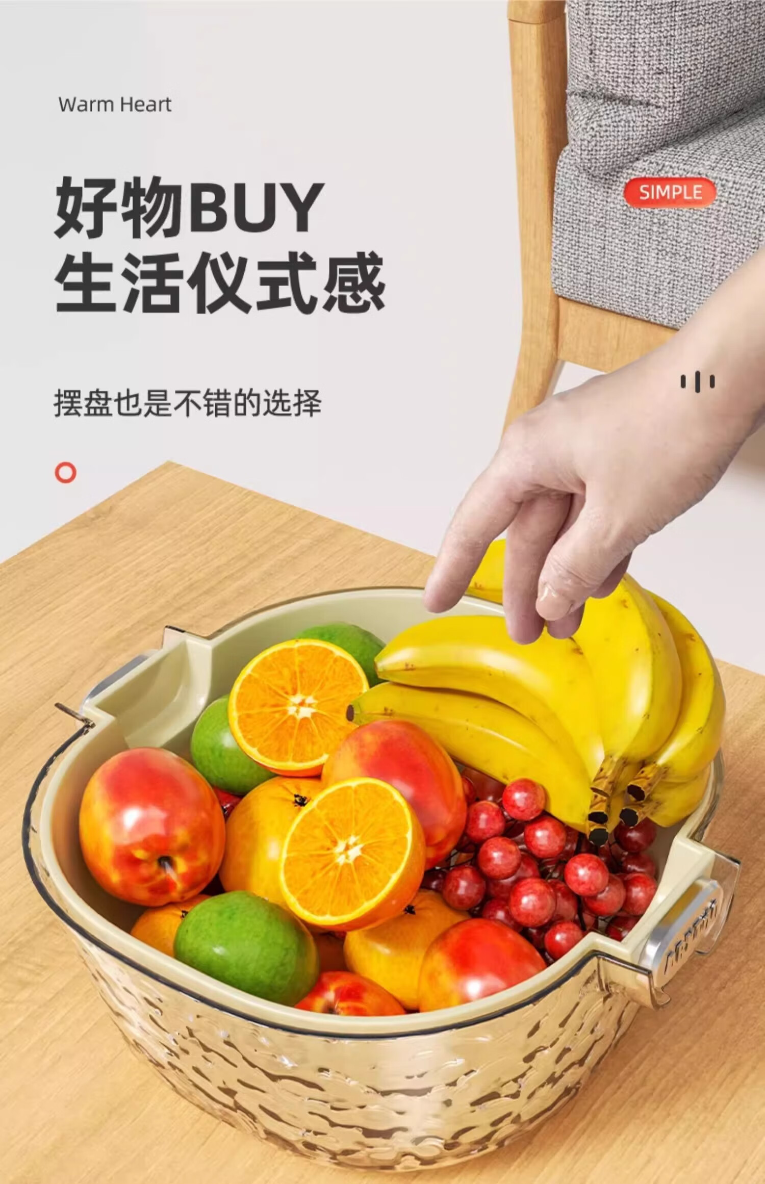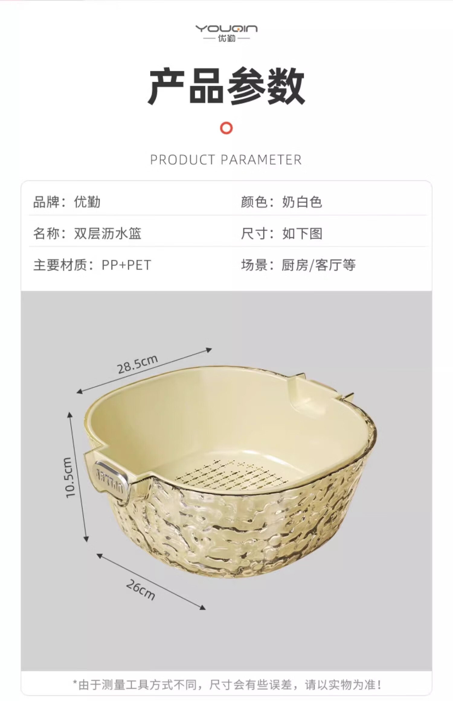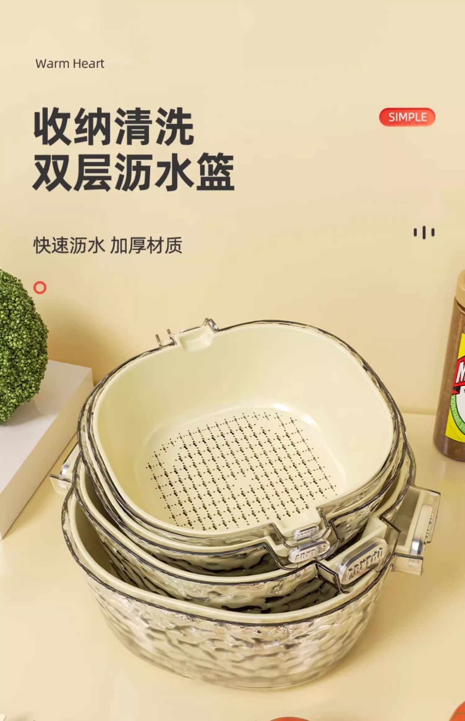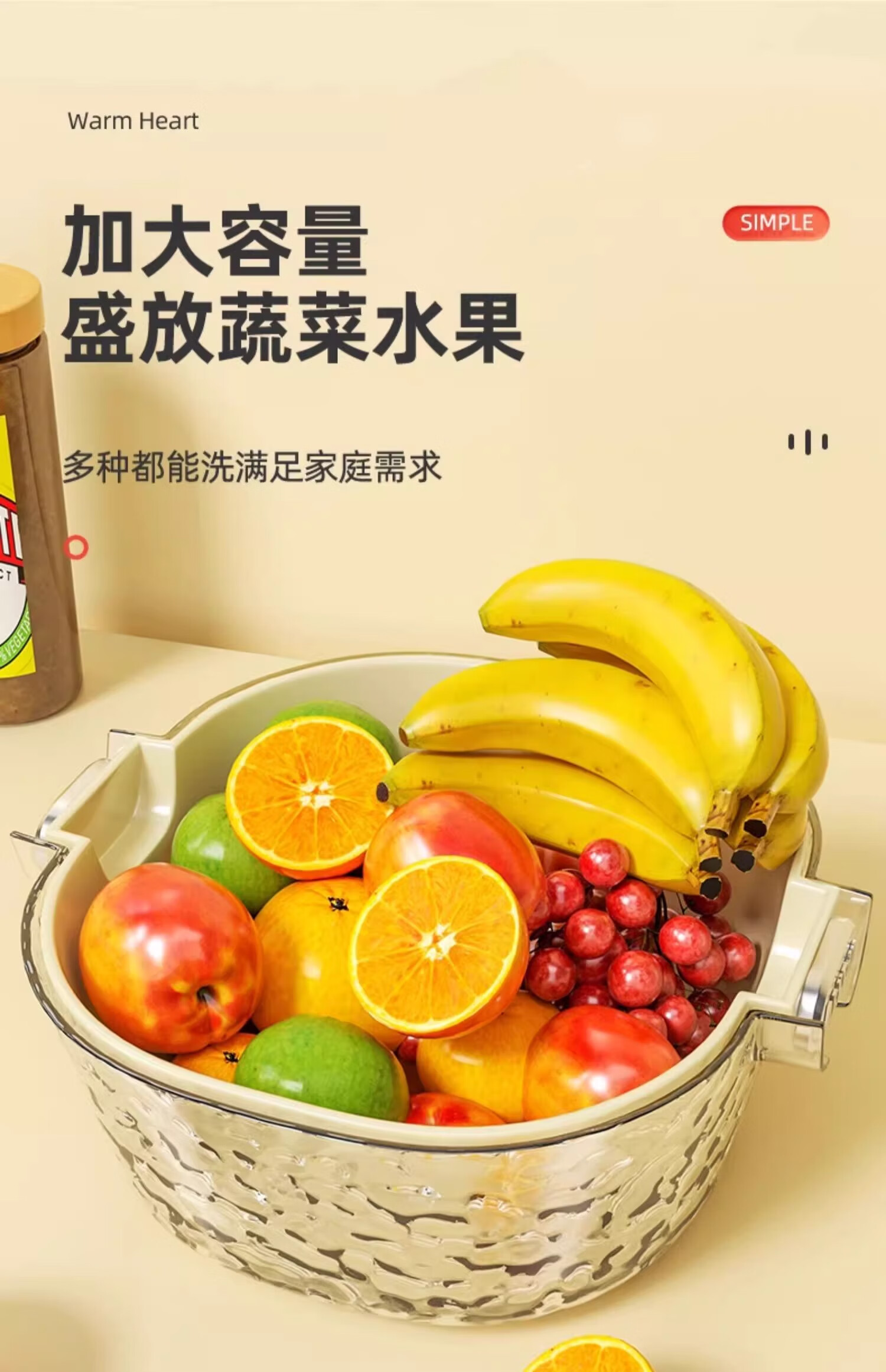 MUYA double-layer drain basket kitchen household fruit and vegetable washing artifact vegetable basket for washing vegetables glacier pattern vegetable basket and vegetable basin