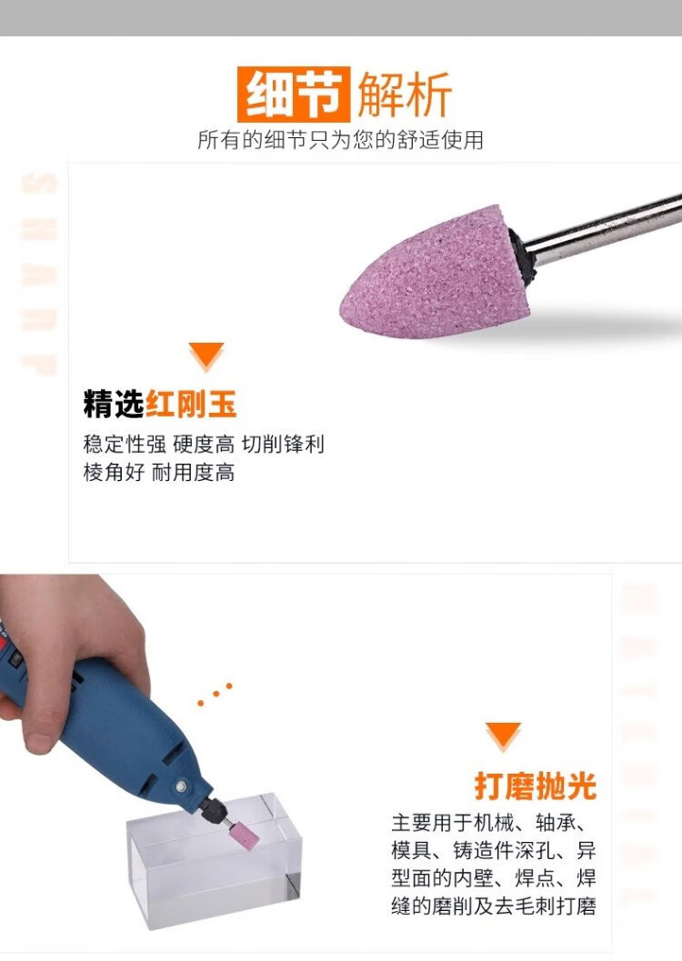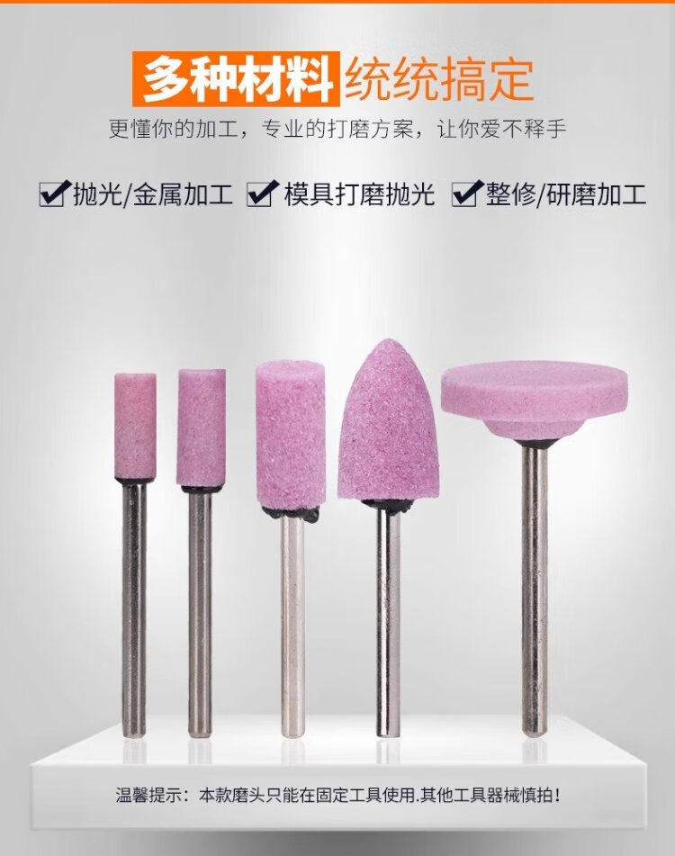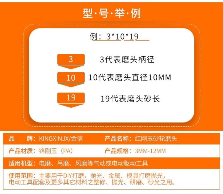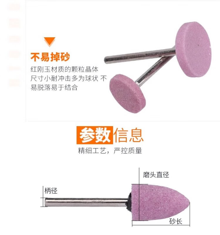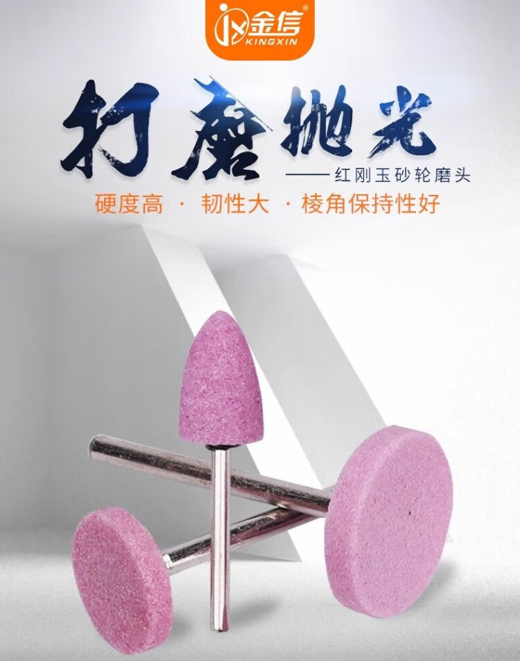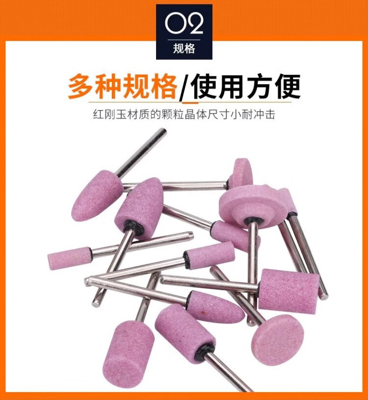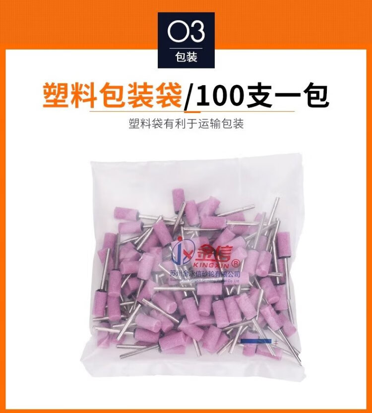 Jinxin grinding wheel grinding head handle 3mm industrial grade wear-resistant combination set red corundum metal mold rust removal expansion hole deburring grinding and polishing wind grinding electric grinding head flint (100 pieces/box)