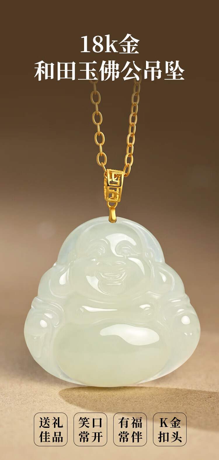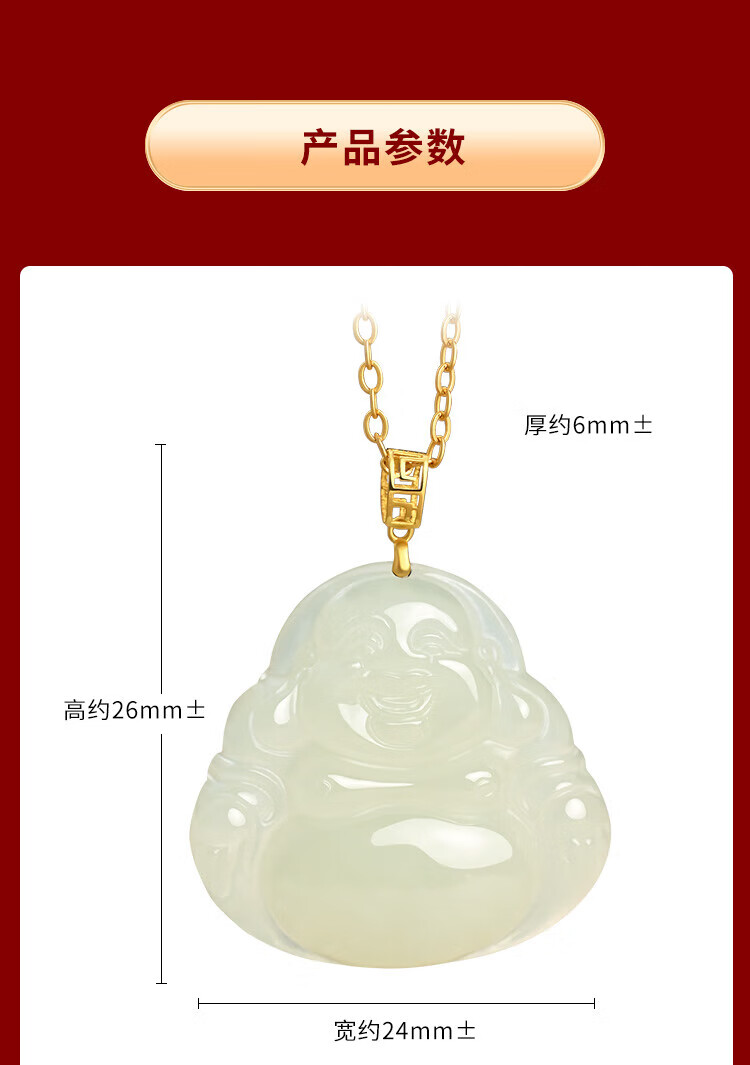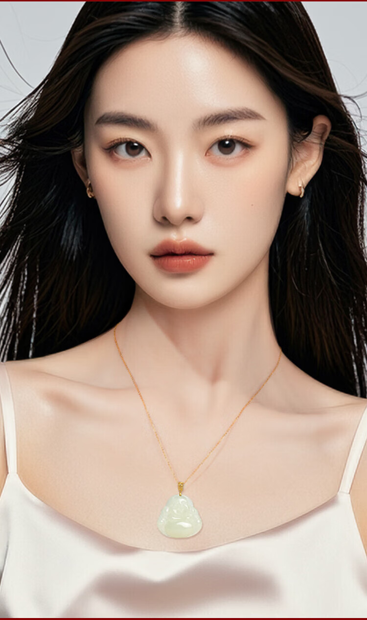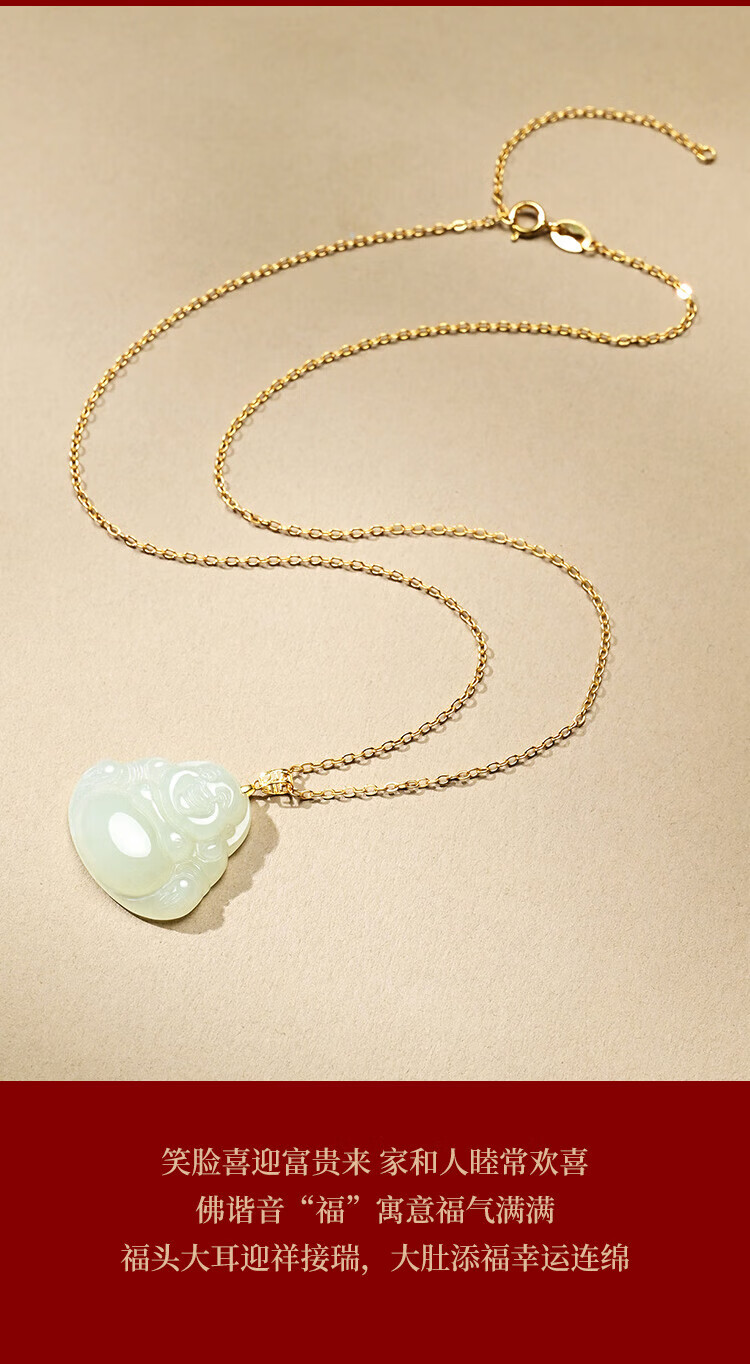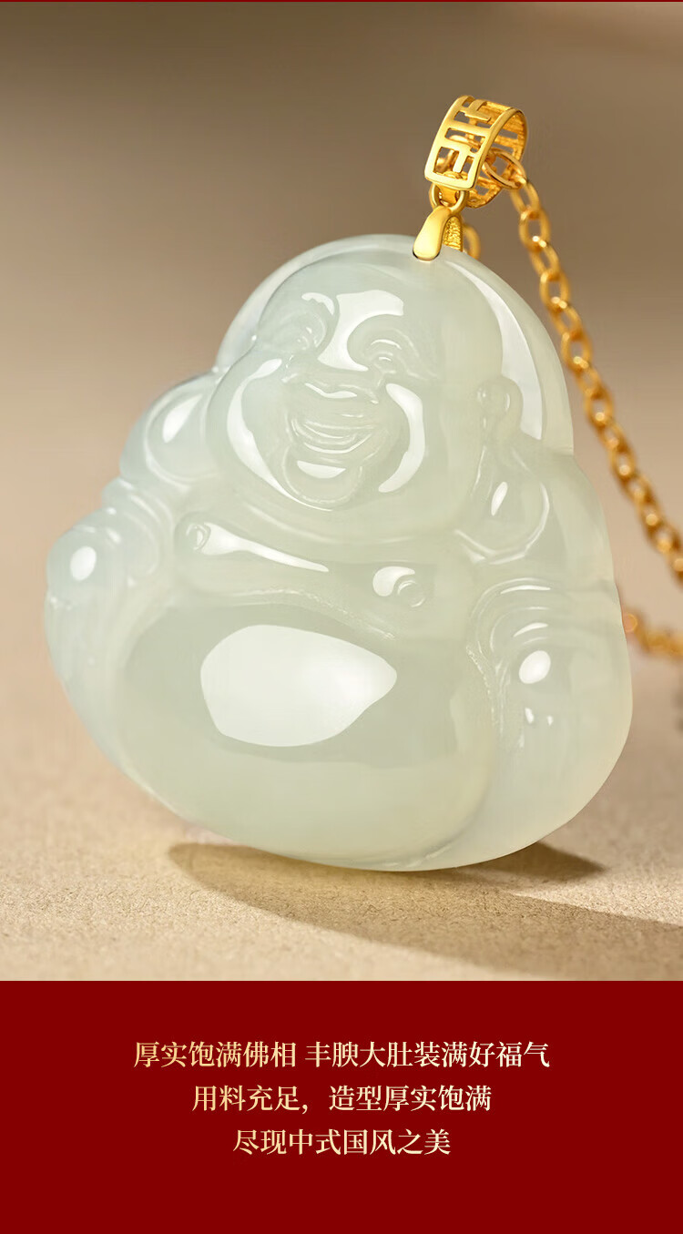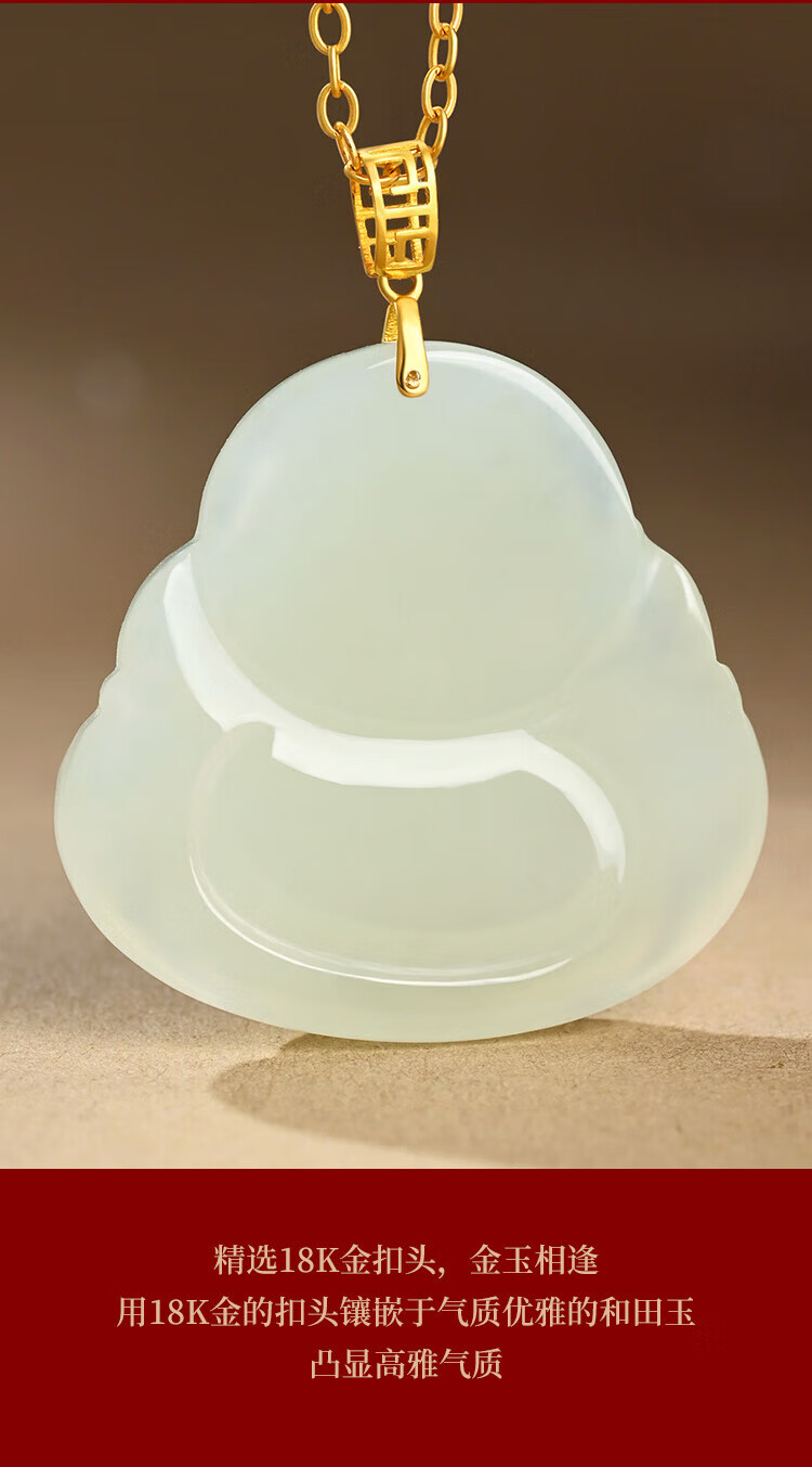 Phoenix Jewelry 18K Gold Inlaid Hotan Jade Buddha Pendant Women's Maitreya Buddha Natural Jade Necklace Birthday Gift