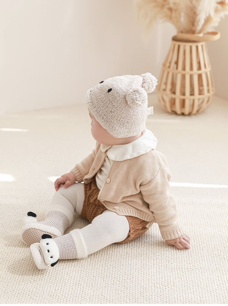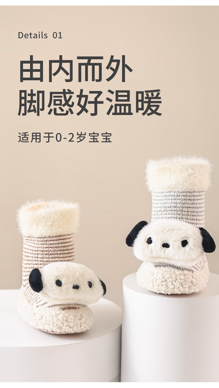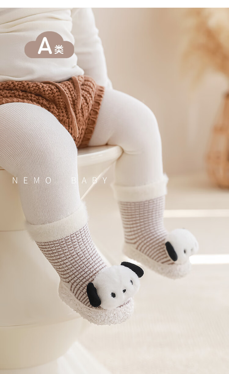Youqi baby toddler socks winter thickened warm mid-tube floor shoes and socks cartoon cute infant non-slip toddler shoes