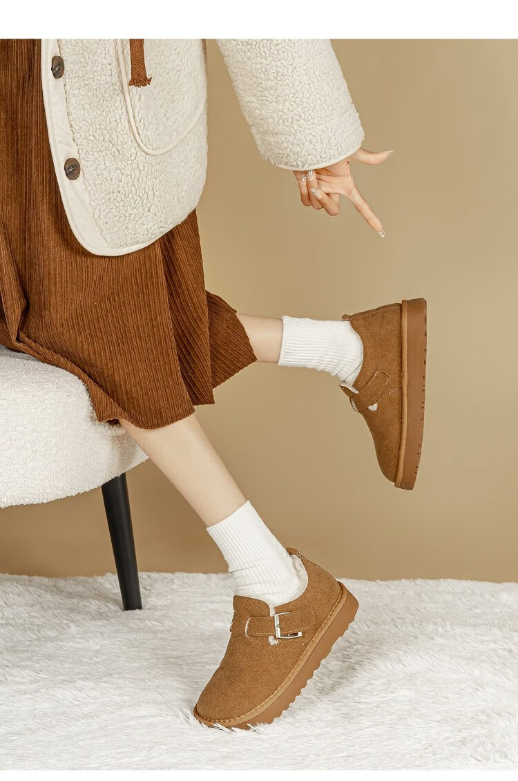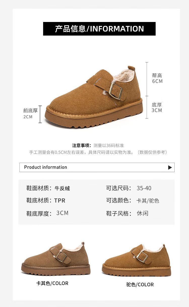 Pull-back snow boots for women in winter, plus velvet to keep warm, fashionable Birkenstock shoes for women, windproof, non-slip, comfortable cotton shoes for women, khaki 37