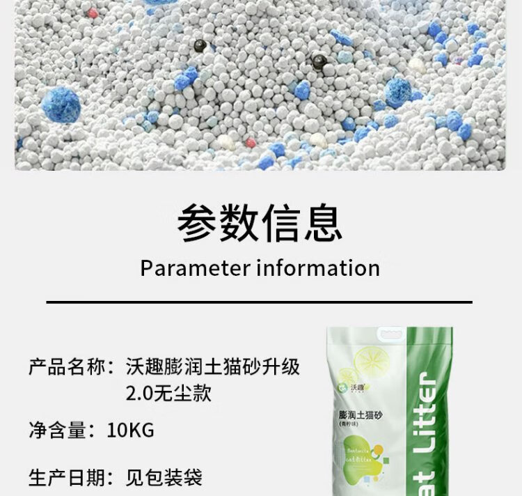 Woqu Cat Litter 2.0 upgraded version low dust cat litter bentonite scented cat litter efficient deodorization 20Jin Jin equals 0.5kg easy to store