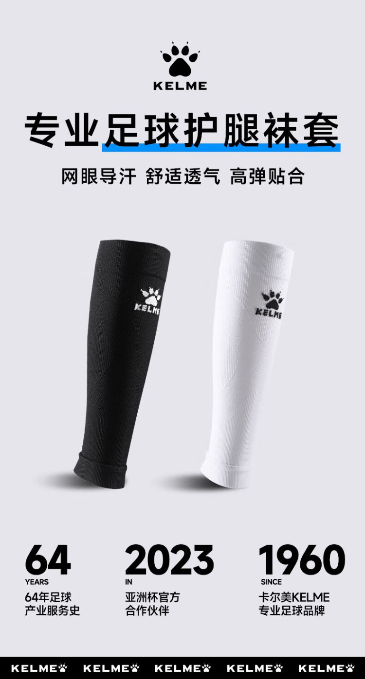 KELME Footless Socks Football Socks Professional Pressure Stockings Protective Fixed Leg Guard Sleeves White XL