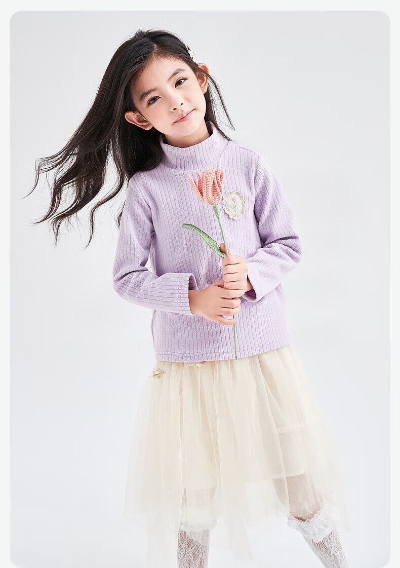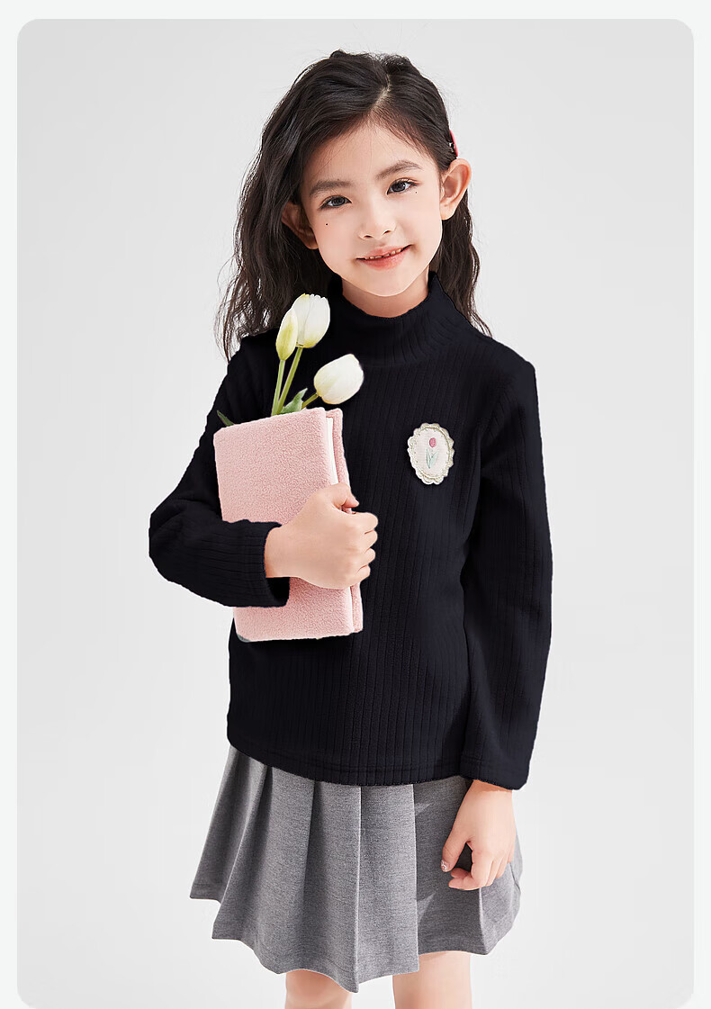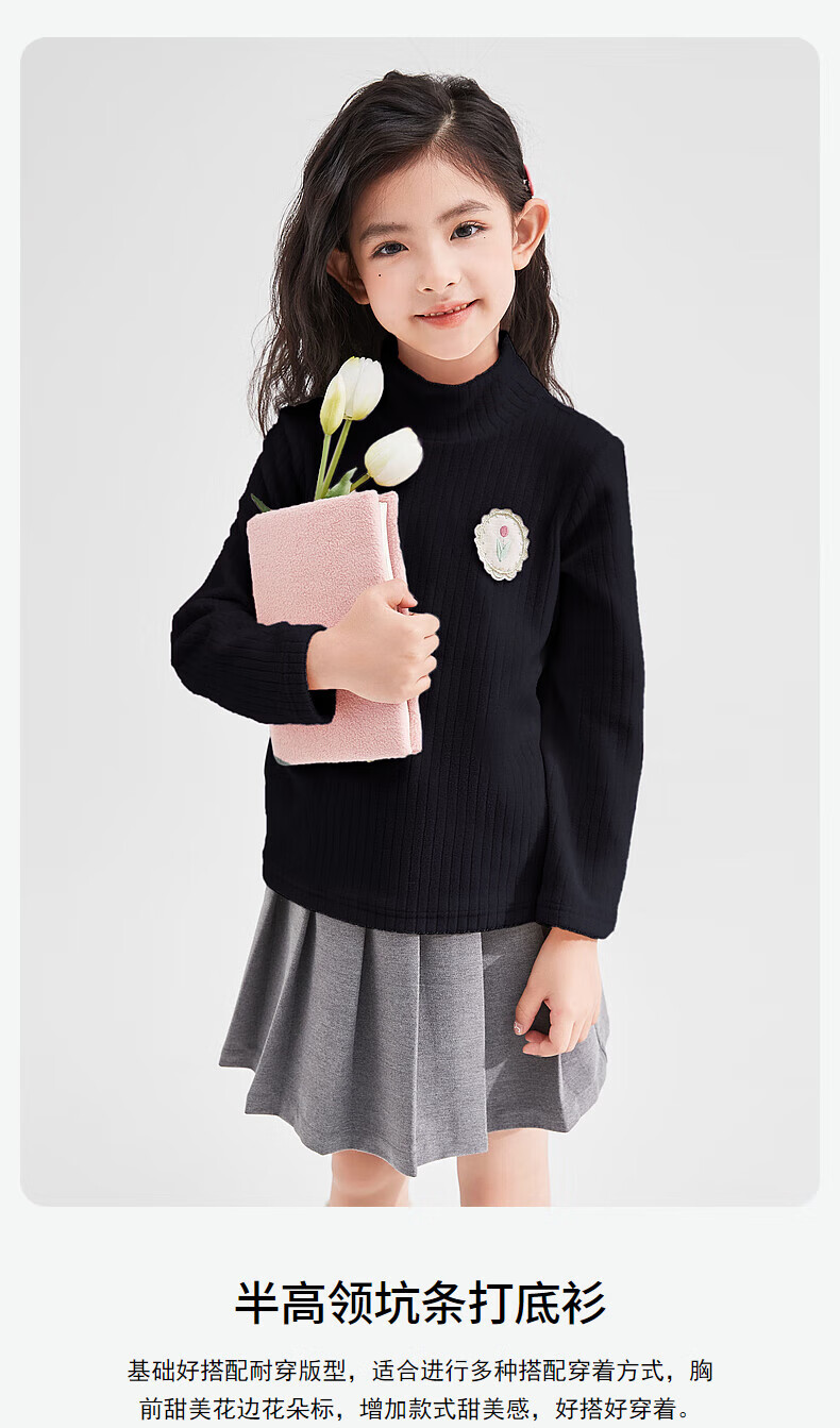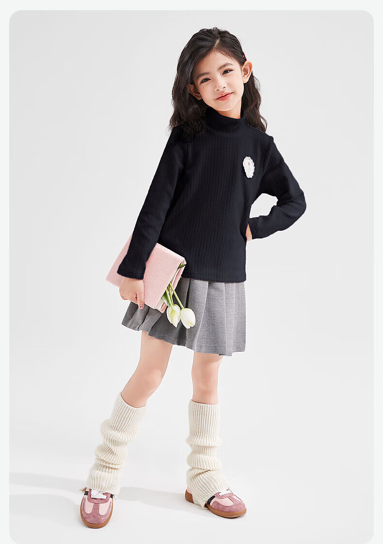 DEESHA children's clothing girls 2025 sweet basic versatile half-turtle collar pit multi-color bottoming shirt for middle and large children
