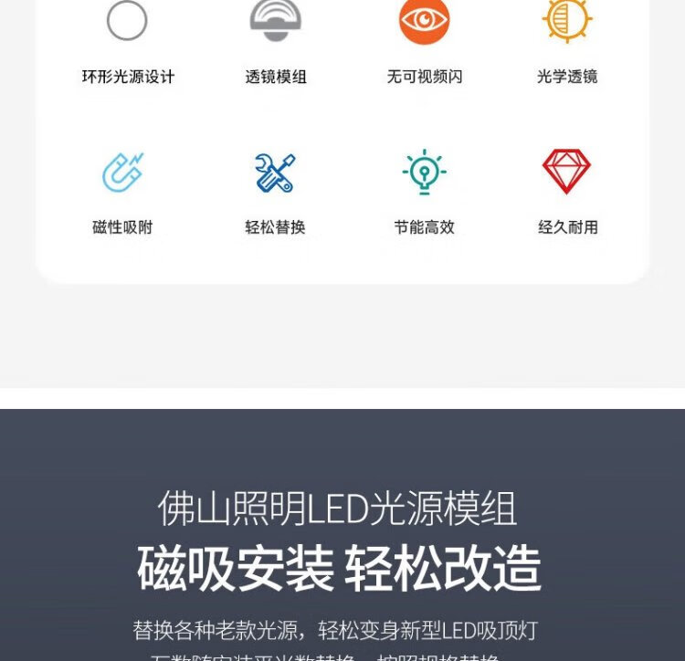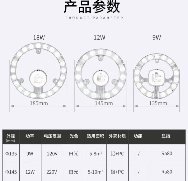 Foshan Lighting (FSL) LED ceiling lamp wick replacement magnetic lamp panel patch modification lamp panel energy-saving round module 9W white light (6500K) 135mm including binding posts