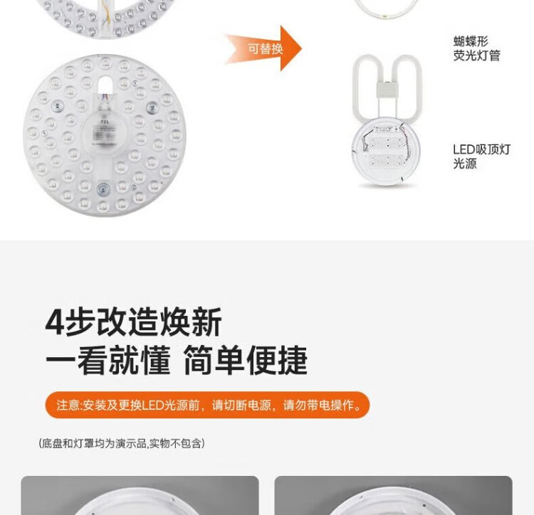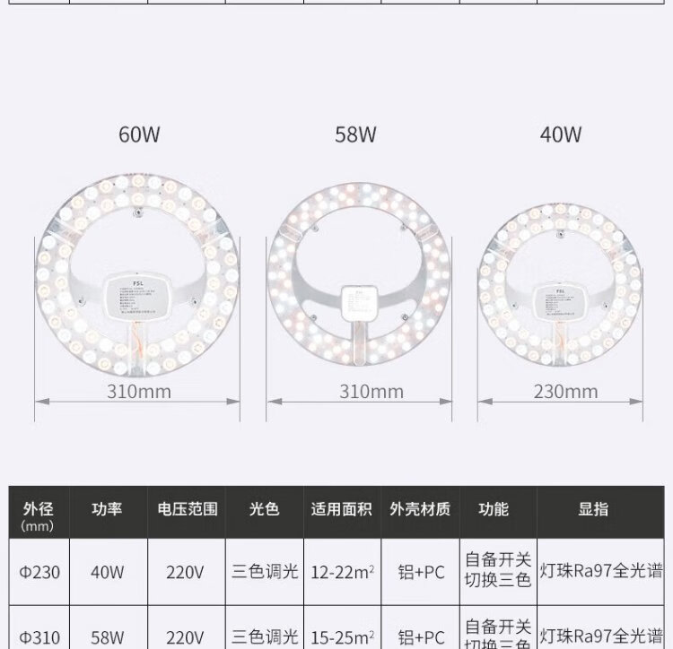 Foshan Lighting (FSL) LED ceiling lamp wick replacement magnetic lamp plate patch modification lamp panel energy-saving round module 48W white light (6500K) 315mm including binding posts