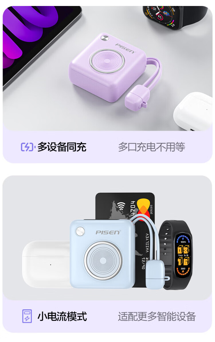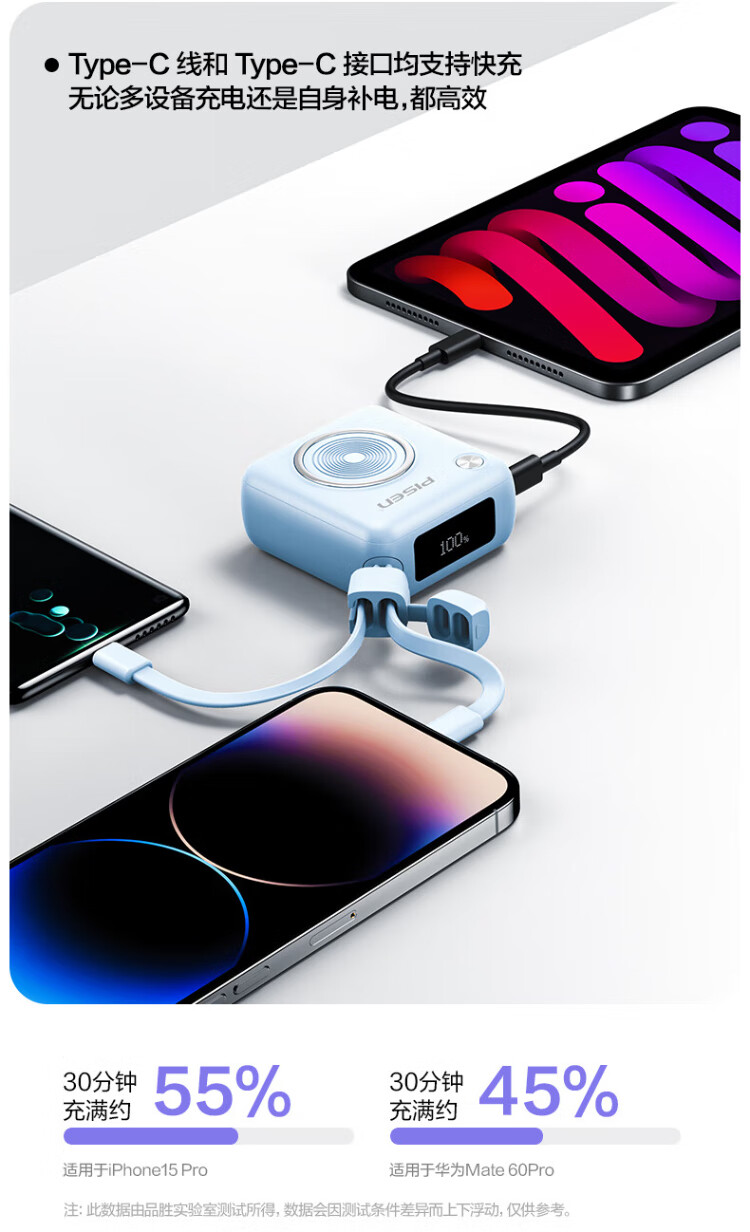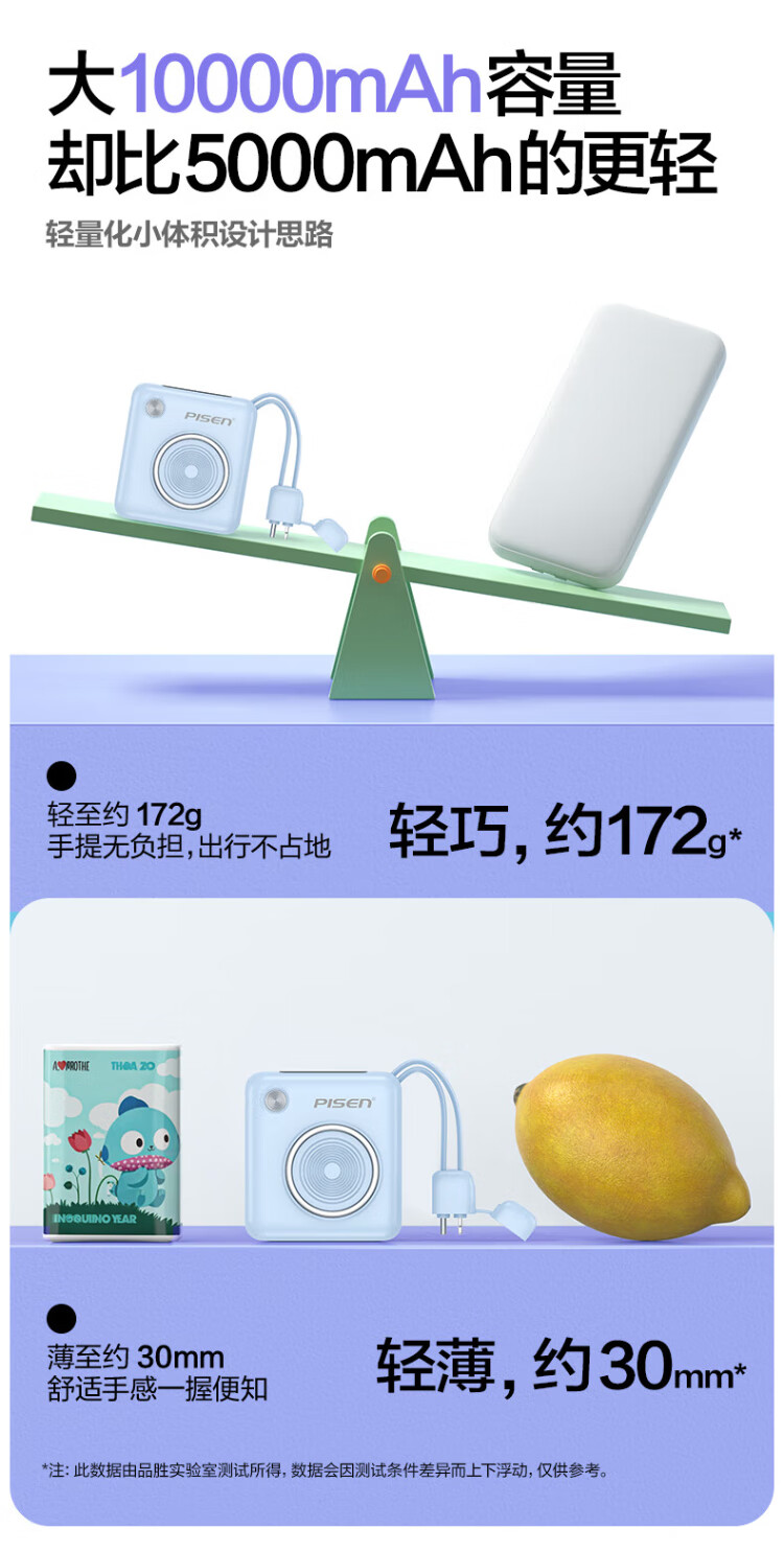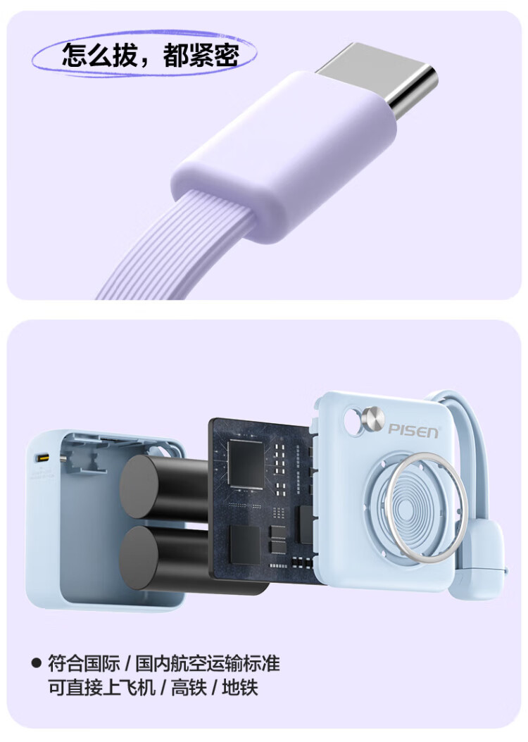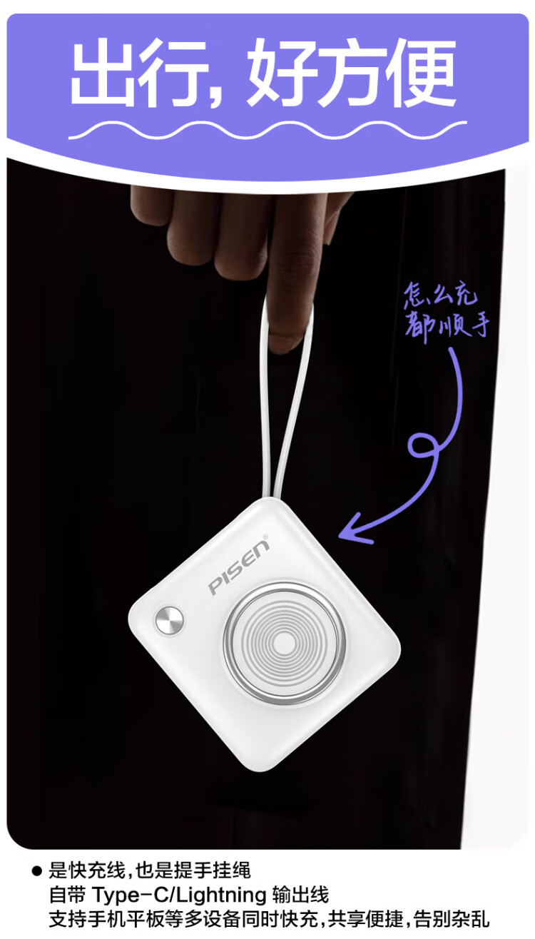 Pinsheng 3C certified power bank 22.5W fast charging comes with dual-wire portable 10000 mAh mobile power supply suitable for airplanes Apple 17promax Huawei Xiaomi White